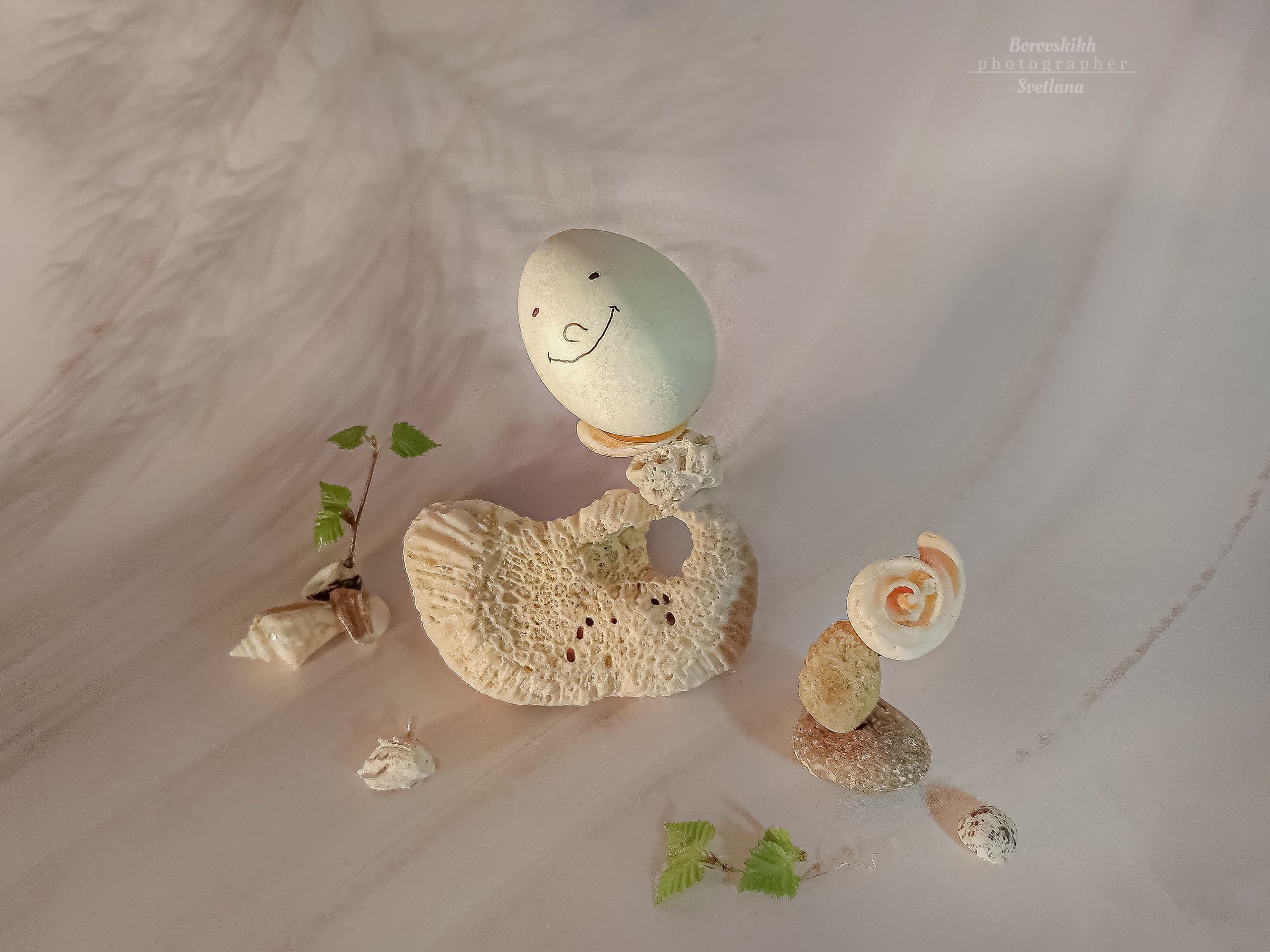 — Кем быть? – задумалось яйцо, Нахмурив белое лицо. — Змеёй, зверюшкой, птахой? Пингвином? Черепахой? Голубкой сизокрылой? Зубастым крокодилом? Павлином длиннохвостым? Ехидной? Утконосом? А может быть, квохтуньей – Как мама, разноцветной? …А может быть, глазуньей. А может быть, омлетом. (из интернета) ........................... ФРИКЕБАНА Снято на телефон Xiaomi Redmi 8 Обработка: Snapseed +Lightroom Год съёмки: апрель 2023