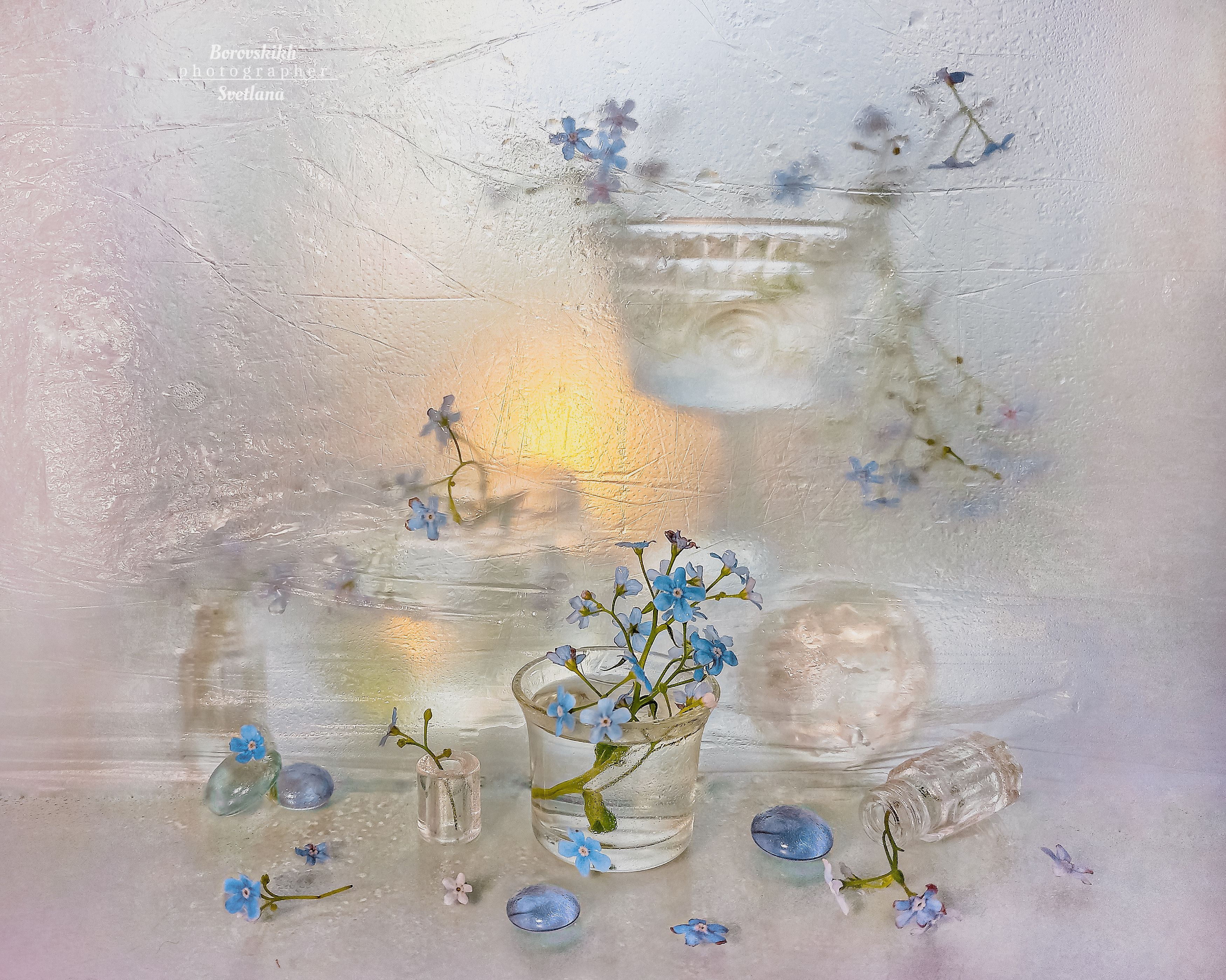 Одну и туже композицию сняла дважды без полиэтилена и через плёнку.