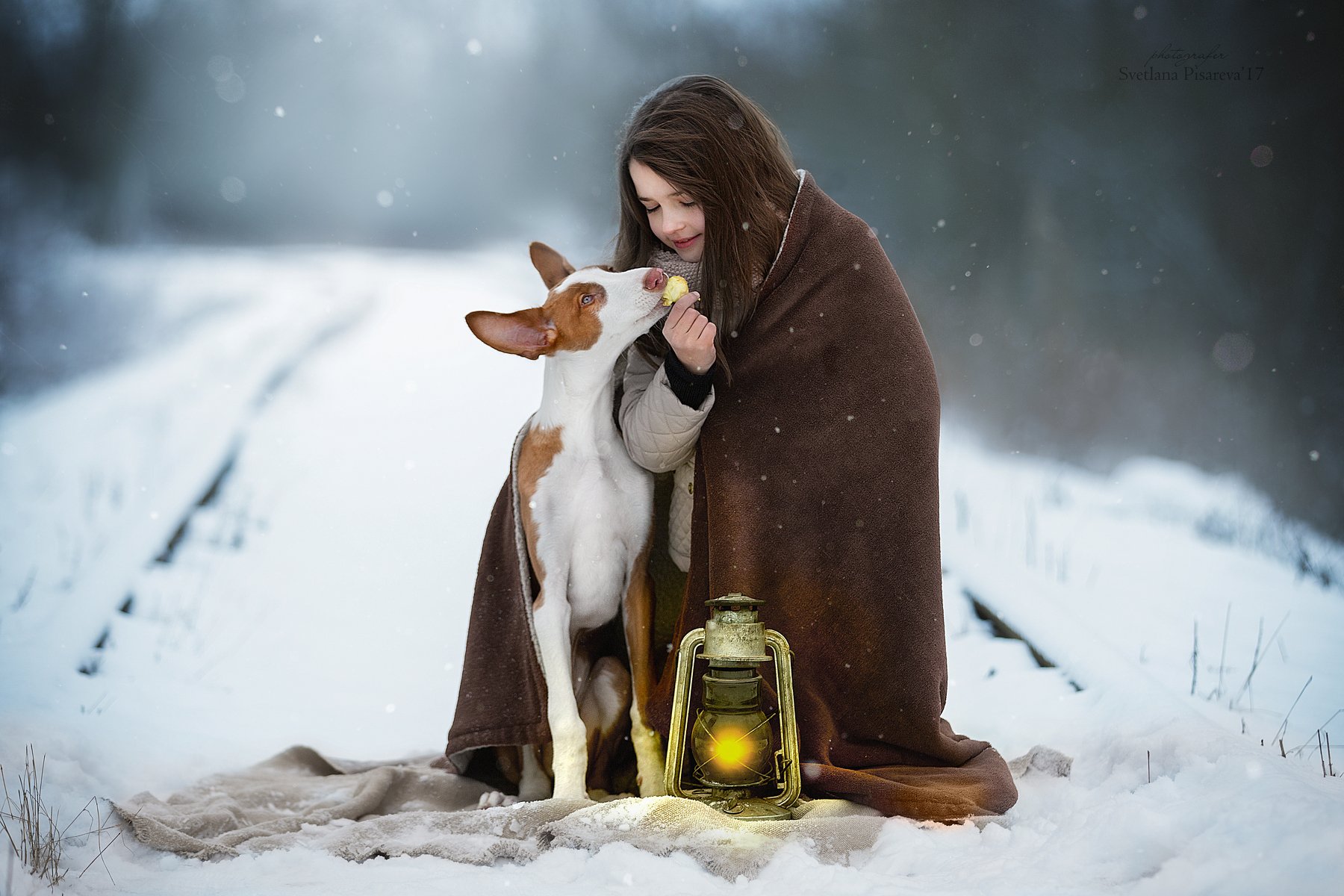 ребенок, девочка, собака, фонарь, дорога, зима., Светлана Писарева