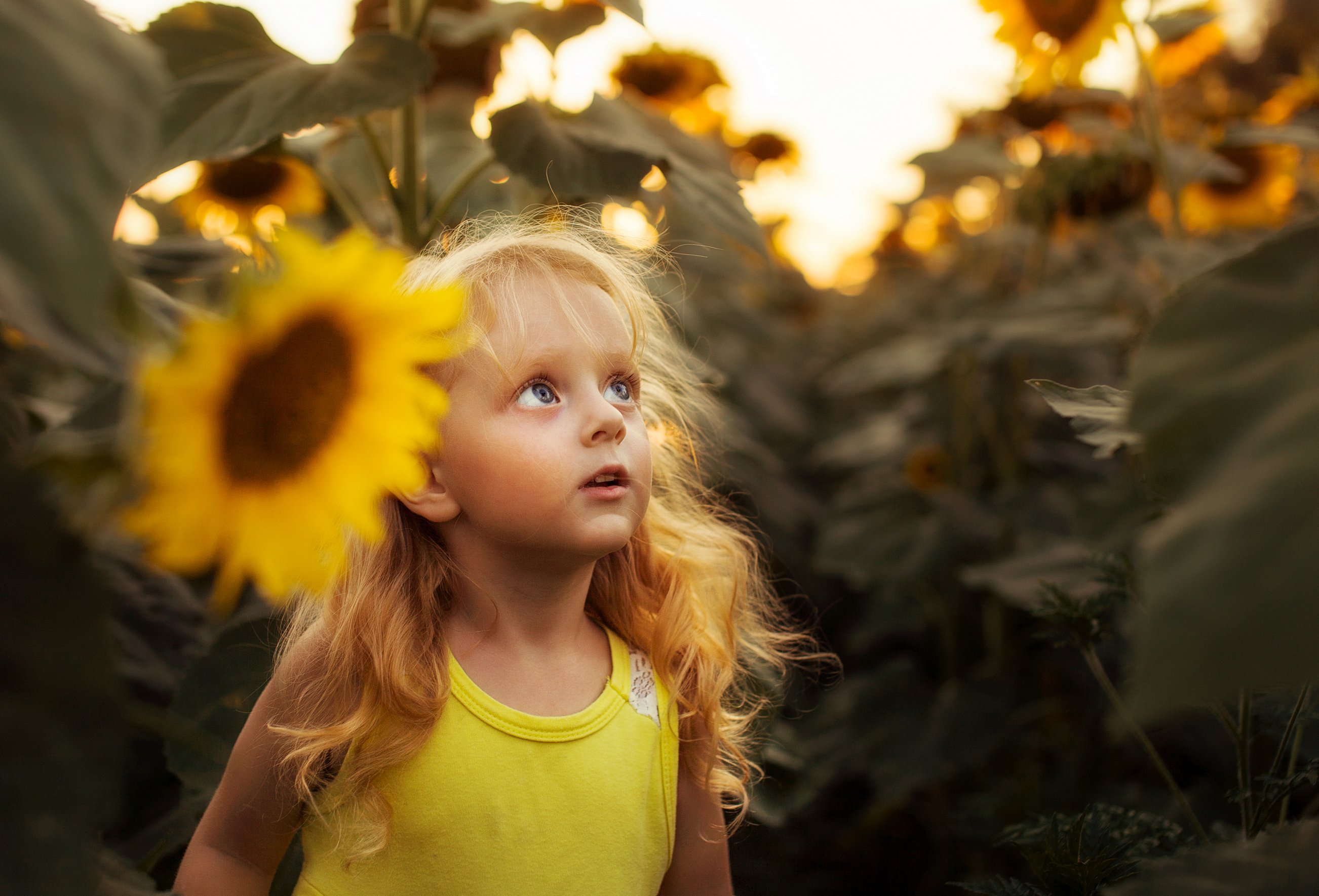 полсолнухи, девочка, поле, закат,, Светлана Червинская