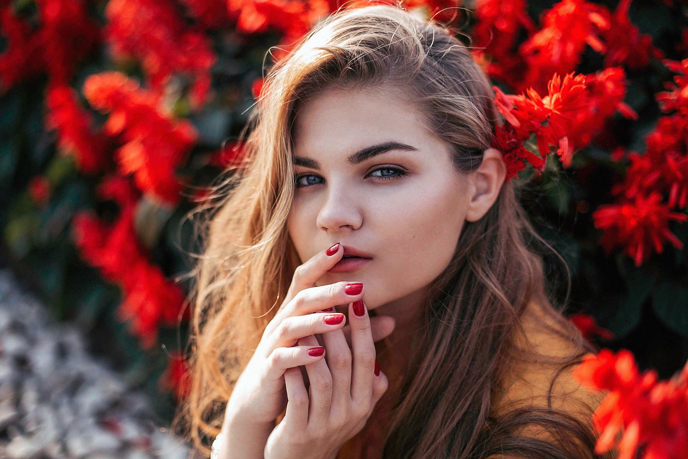 девушка,женскийпортрет,красное,сексуальность,взгляд,цветы,на природе,портрет,красные цветы,лицо,portrait,woman,flowers,nature,beauty, Светлана