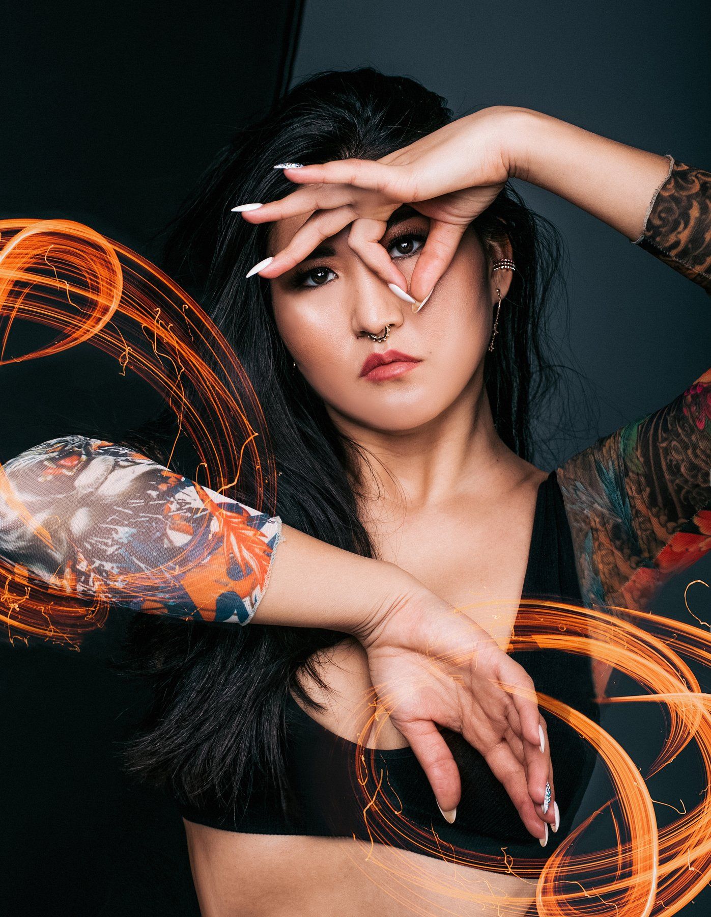 девушка, арт, дракон, тату, пирсинг, портрет, популярное, женский портрет, волосы, взгляд, руки, Светлана
