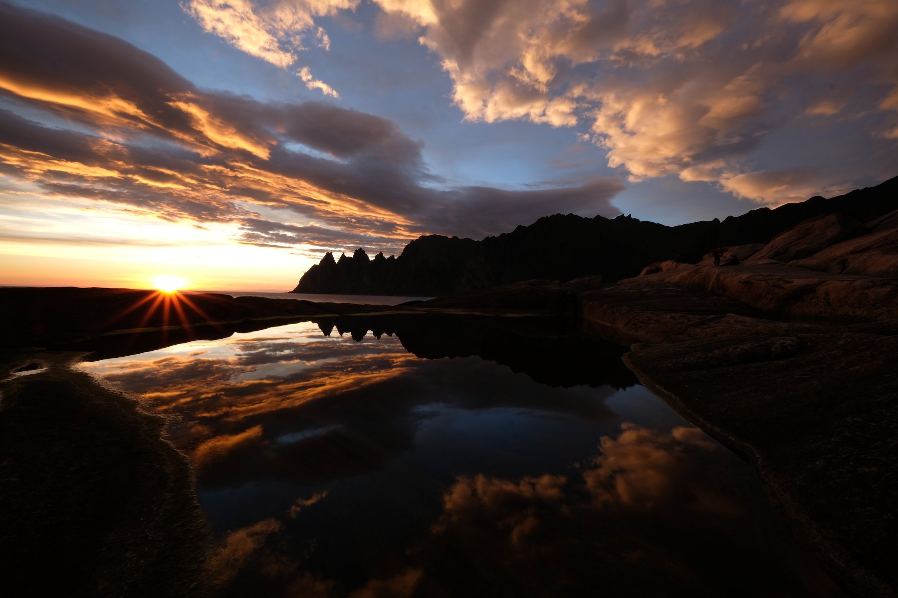 landscape, nature, reflection, sky, colors, Norway, sunset, summer, mood, sun, light, mountain, seascape,, Svetlana Povarova Ree