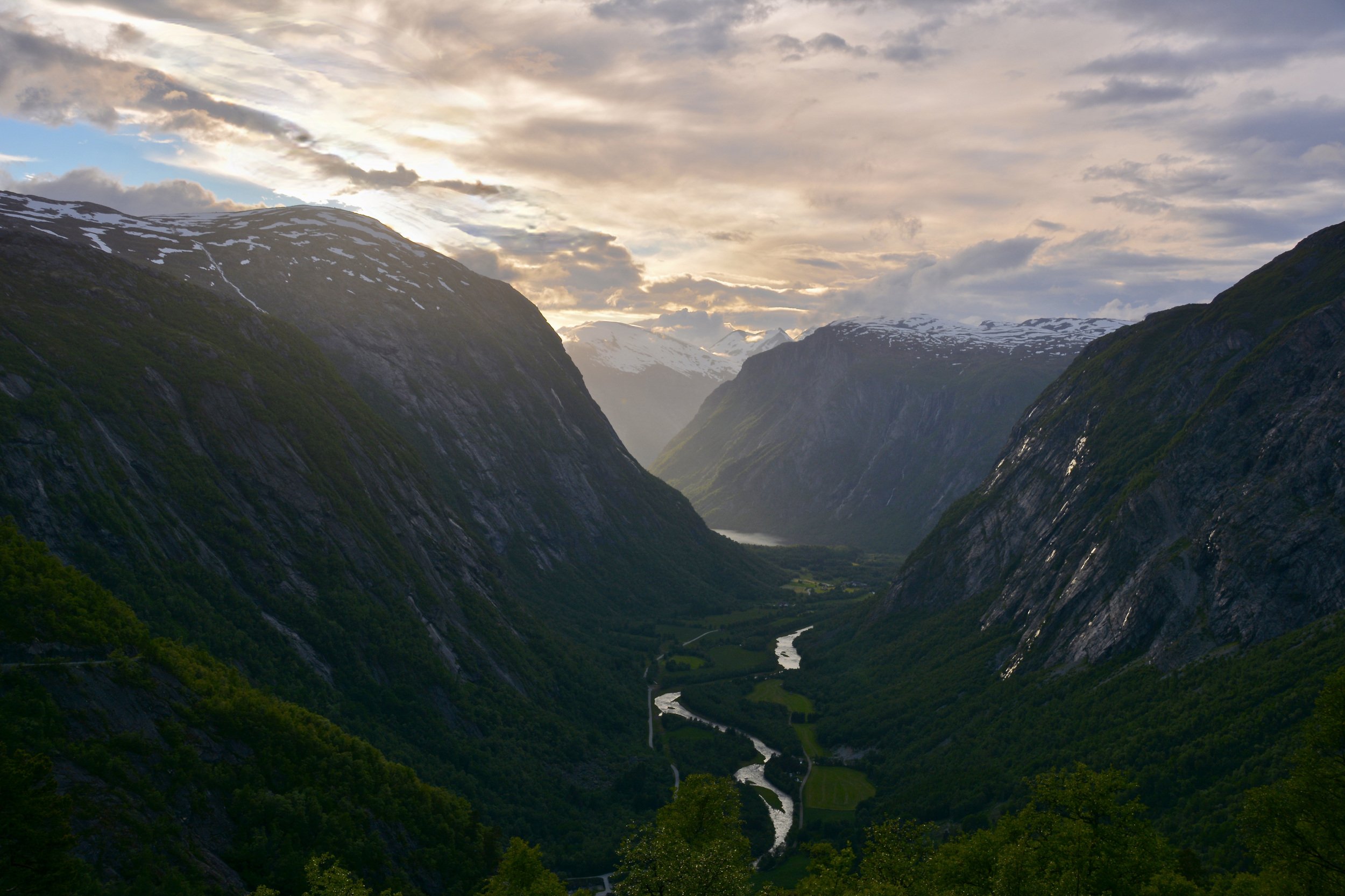 Landscapes, nature, Norway, river, mountain, sky, colors, snow, summer, sunset, clouds, sun light, , Svetlana Povarova Ree
