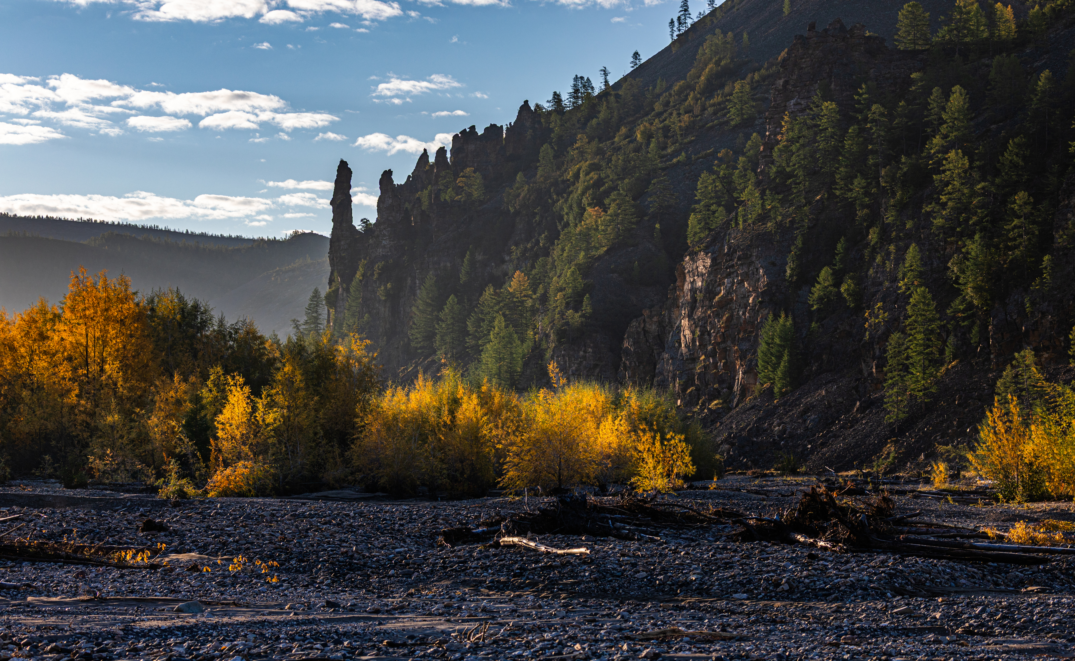 Сергей, снимки — как тихий вечер в тайге: свет ложится на курумник, река вьётся между сопок, а Хетские столбы — будто оставленные ветром стражи. Осень здесь не просто цвет — это настроение, которое захватывает с первого кадра. Особенно нравится, как свет играет на камнях и вода вдруг становится почти серебряной. 🌄🍂📷