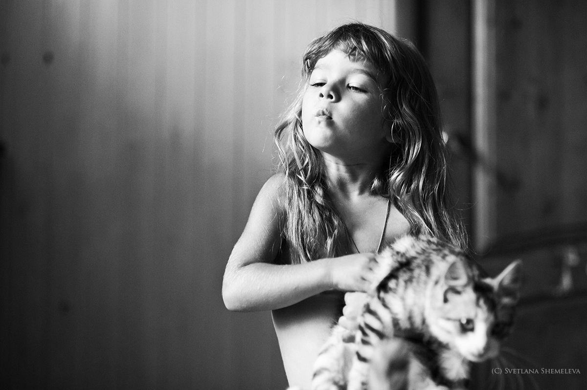 Милая девчушка) Любит котика)
