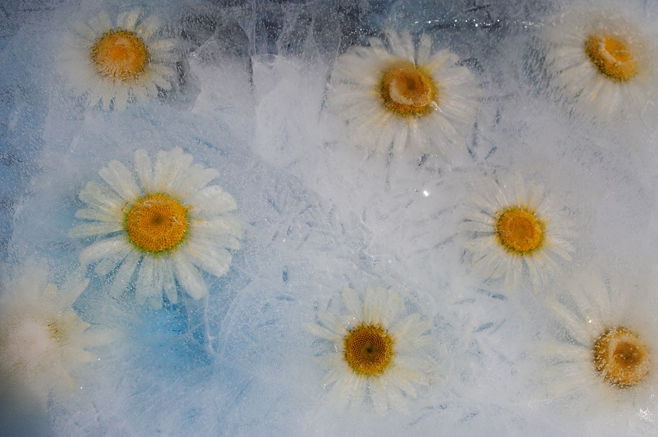 Цветки ромашки замороженные во льду