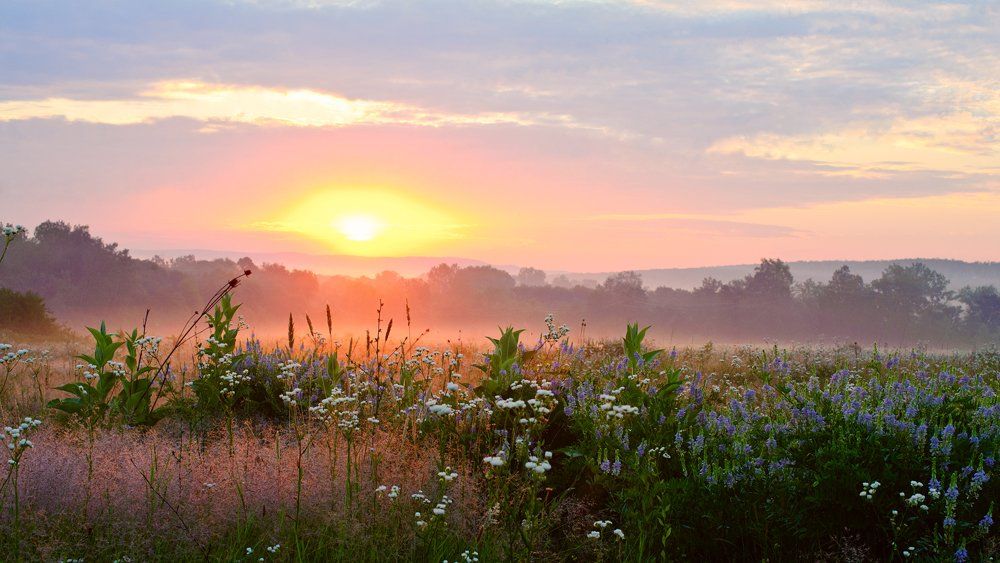 Эта полянка находится недалеко от моего дома, я туда часто хожу просто прогуляться с фотоаппаратом, поэтому штатив не беру, он весит 6 кг., это уже не прогулка получается:) Если повезет с погодой, то по утрам там часто бывает туман и достаточно живописно, один большой недостаток - линия электропередач, кругом одни провода и столбы. С ними приходится долго возиться в фотошопе