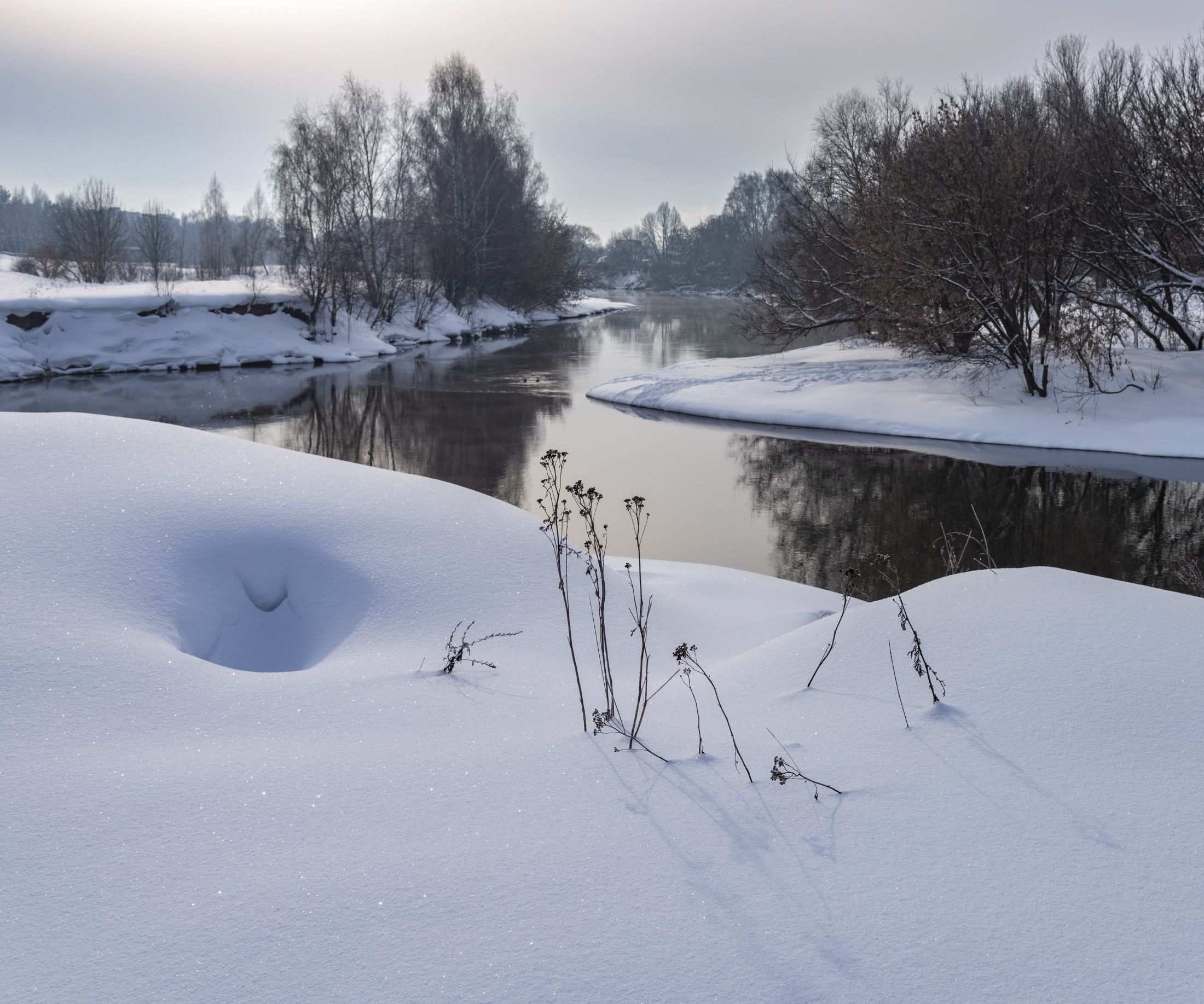 река, снег, зима, Владимир Штыриков