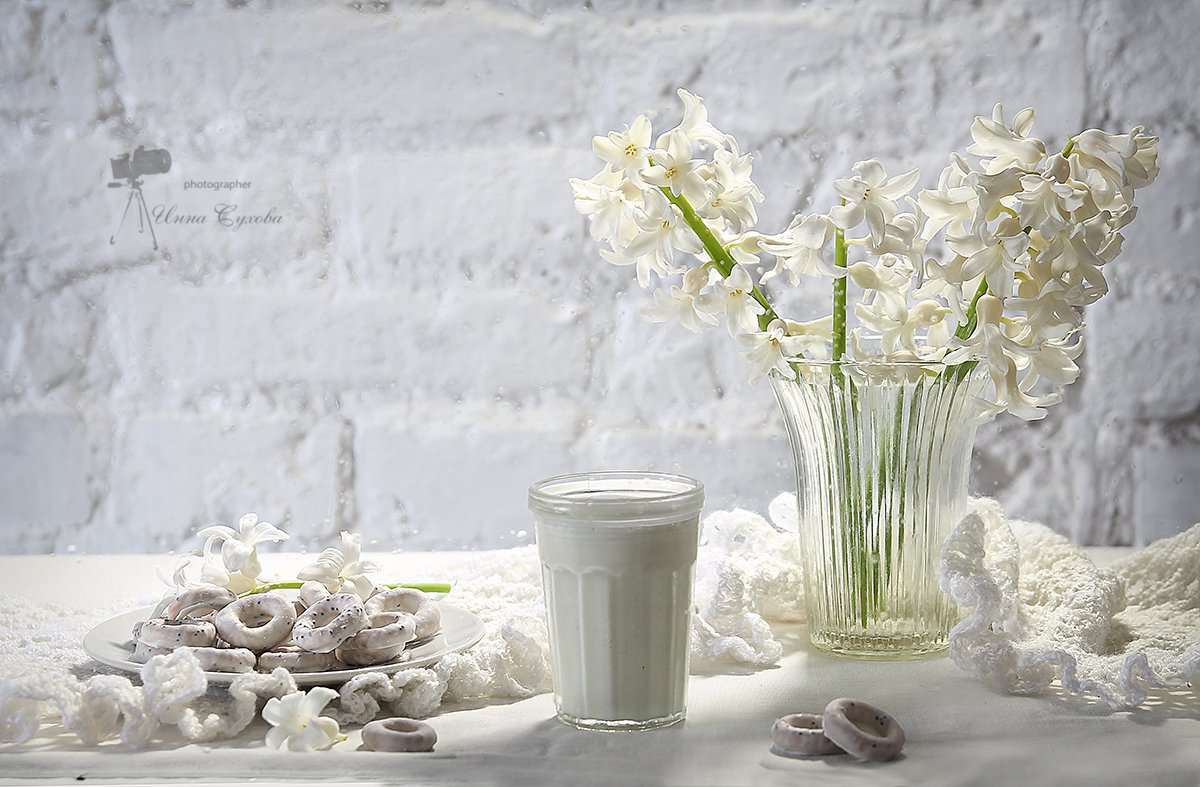 Ваза, Гиацинт, Молоко, Салфетка, Стакан, Сушки, Инна Сухова