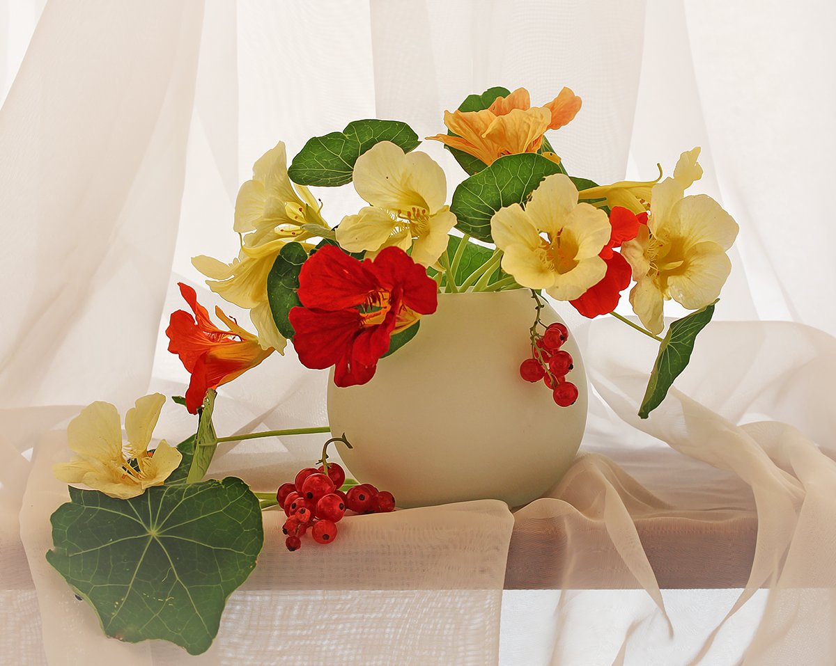 Ваза, Настурция, Смородина, Цветы, Инна Сухова