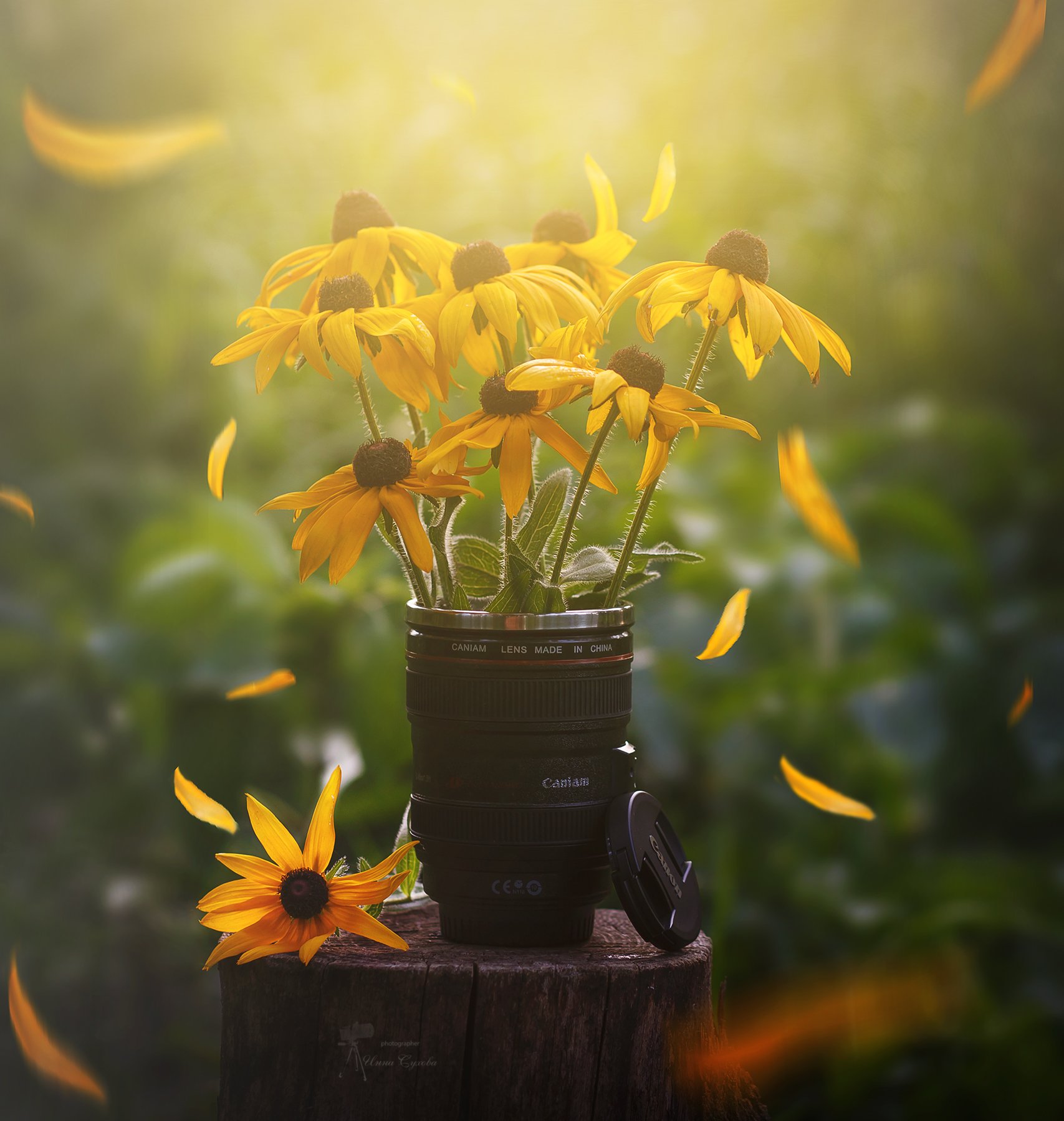 Объективы, Пенек, Рудбекия, Цветы, Инна Сухова