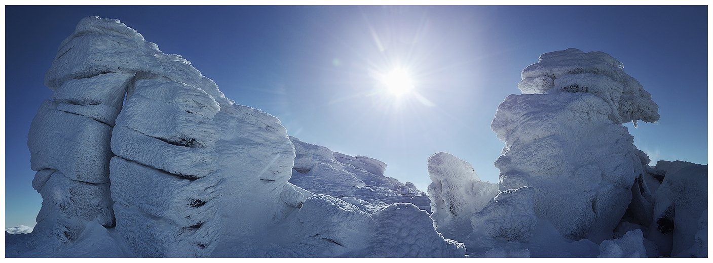 зимой камни на вершине покрываются огромным по толщине инием, бывает до 2 метров.. короче - это все сделали ветер, влага и мороз;)