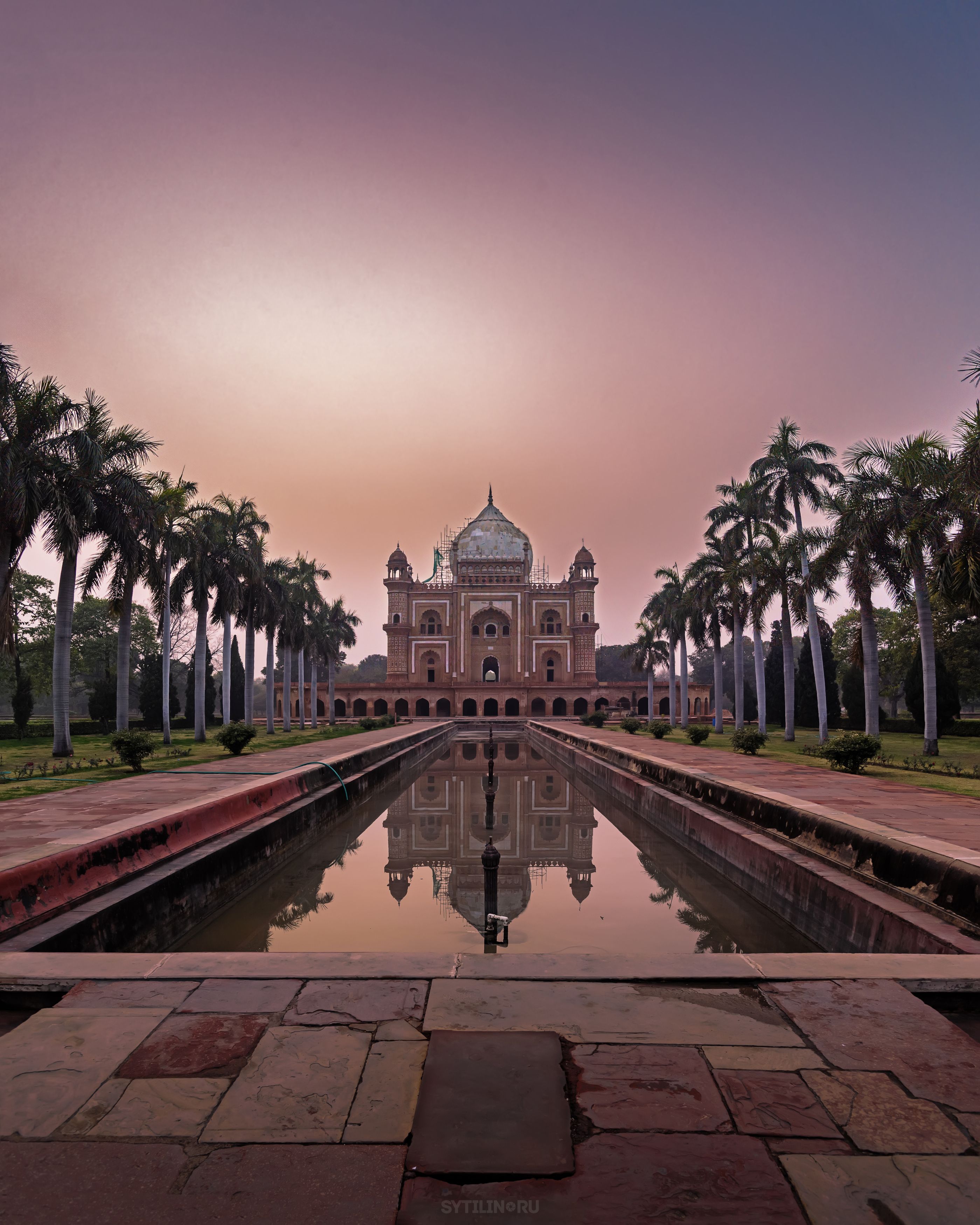 Гробница Сафдарджанга, Дели, Индия, Tomb of Safdar Jang, достопримечательность, туризм, сад, фонтан, вечер, вечерний, закат, розовый, мавзолей,, Сытилин Павел