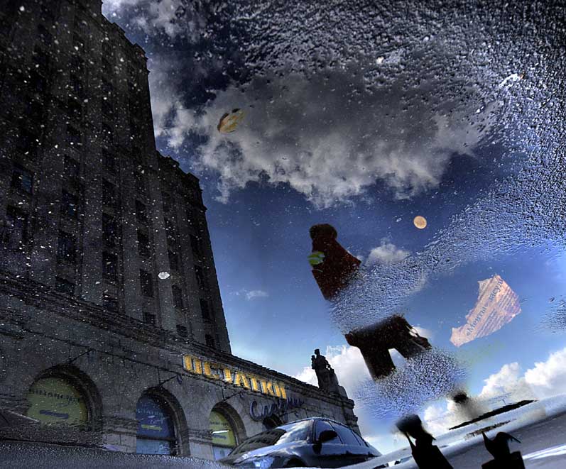 лужа, высотка, прошлое, отражение, Татьяна Гориловская