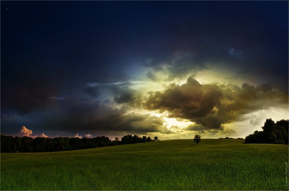 одинокое дерево, дерево, пейзаж, небо, красиво, красивое небо, поляна, поле, дерево в поле, Alexandr