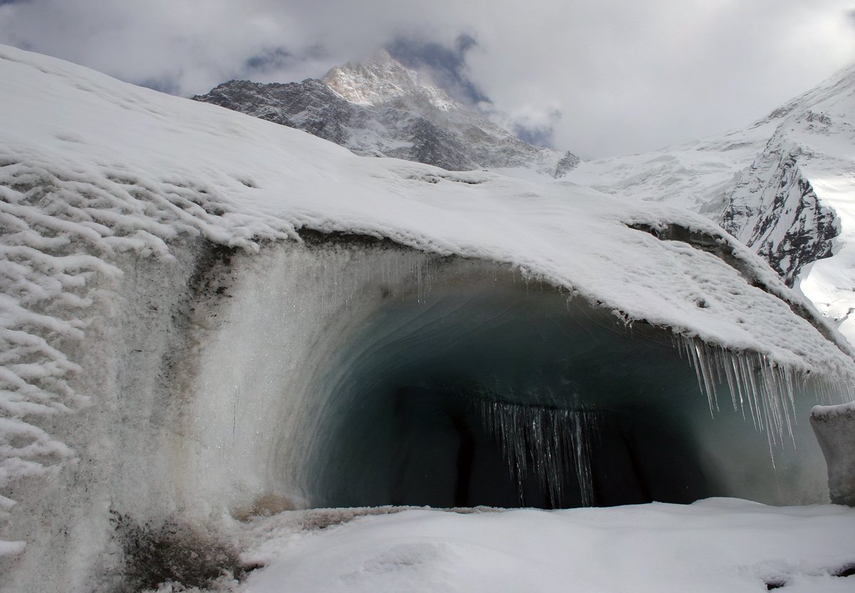 Это низ ледника? Это дырка - полость в леднике? Мой папа - геодезист, весь Памир и Тянь-Шань облазил по работе - рассказывал что вероятно технически можно вдоль всего ледника пройти.