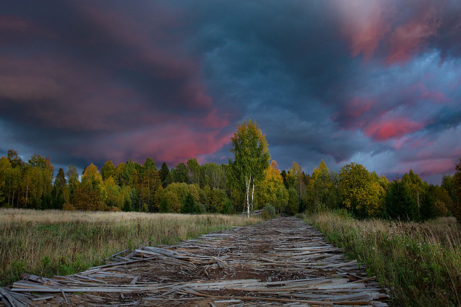 Небо на закате и красная радуга