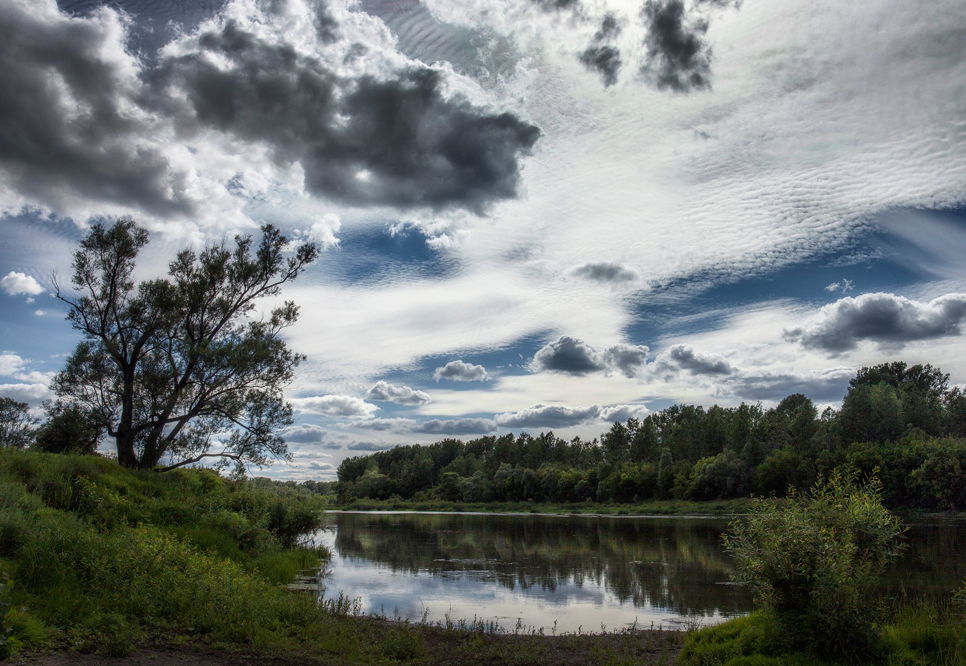 пейзаж,река,вечер,облака,небо,отражение, Тамара Андреева
