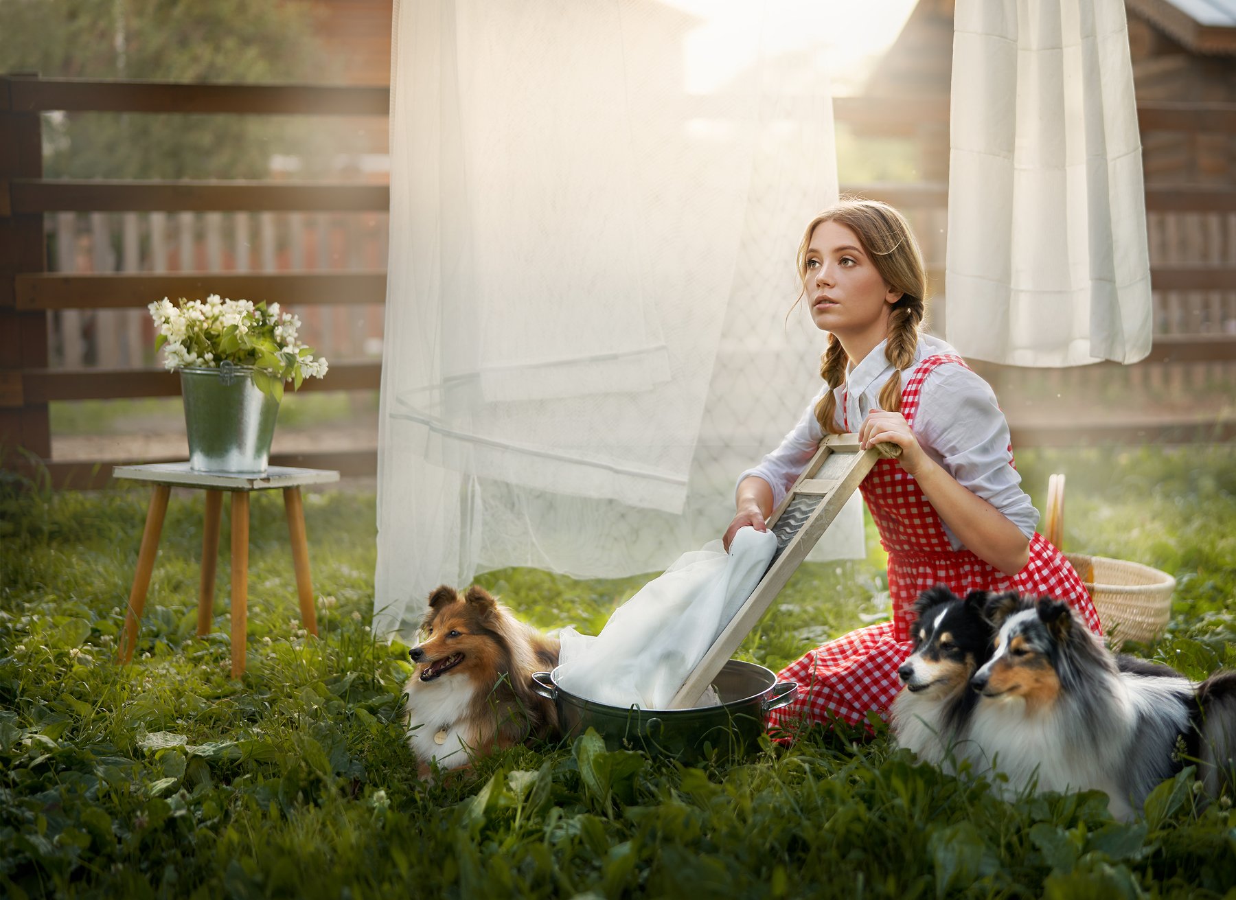 девушка, лето, собака, собаки, портрет, красиво, прачка, деревня, Татьяна Сидюкова