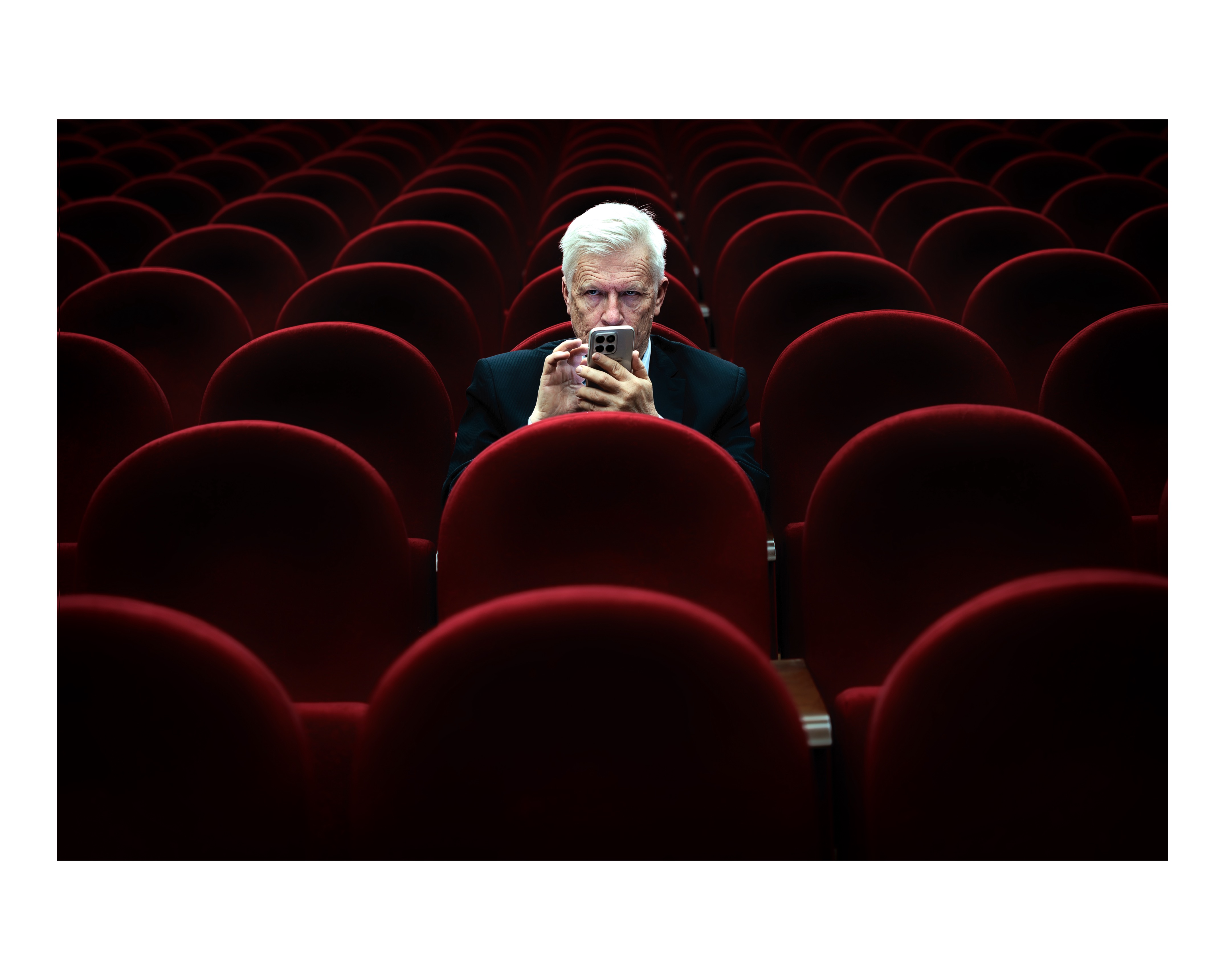 эта фотография сделана на концерте классической музыки в консерватории. Я пришел немного раньше, чем начало концерта и увидел олинокого мужчину сидящего в центре зрительского зала.
