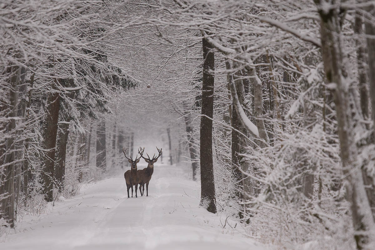 ssaki,przyroda,puszcza białowieska,jelenie,natura,dzika przyroda,zima,las,śnieg,poroze,drzewa, Zakrzewski Marcin