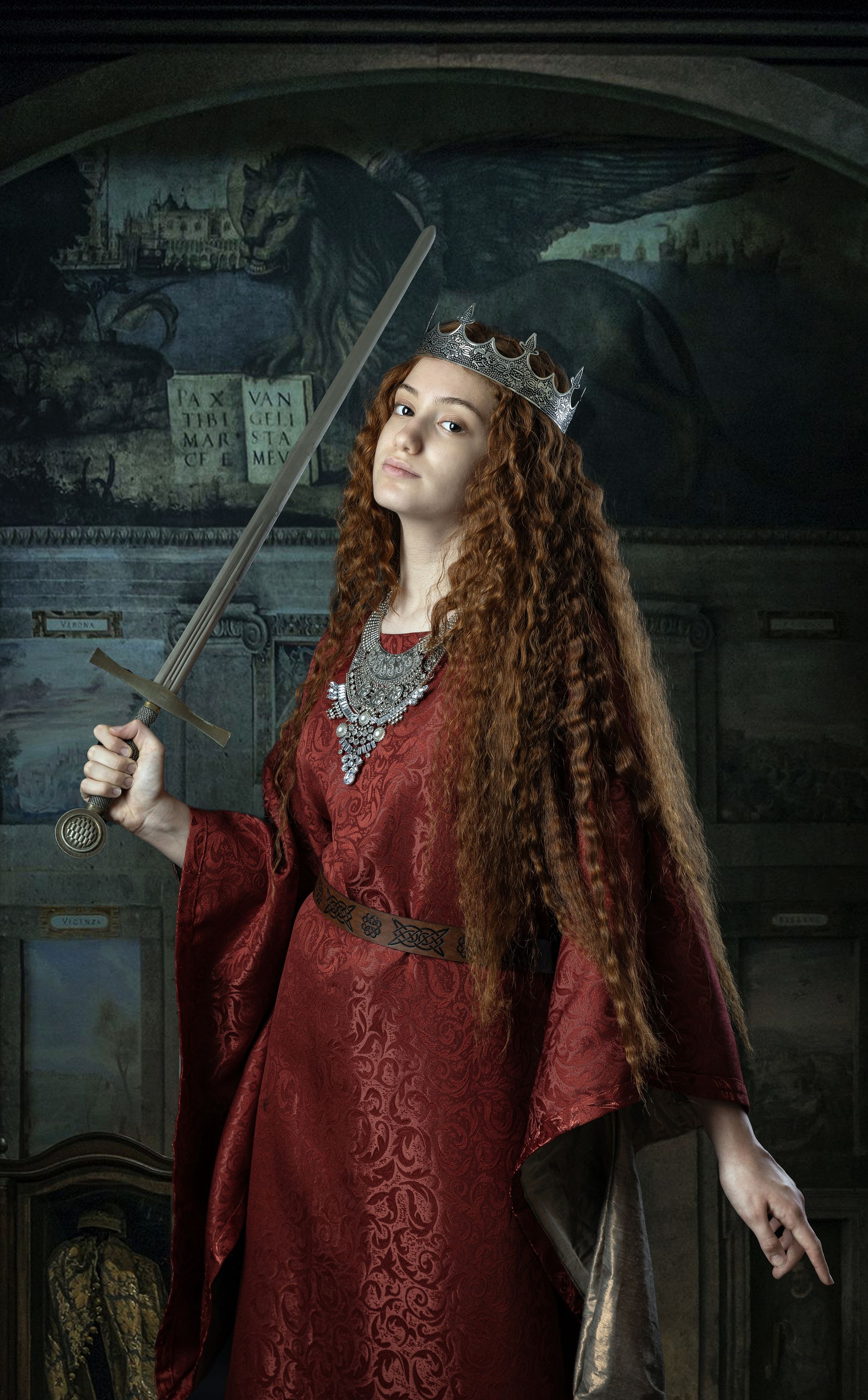 Ну Вы понимаете, что это жалко звучит. Вот в этом то и дело, меч держать тяжело, так возникает вопрос - зачем тогда ты его взяла? В зубах ковыряться? Или пораниться? Именно поэтому и нет веры изображению. Вот так я думаю.