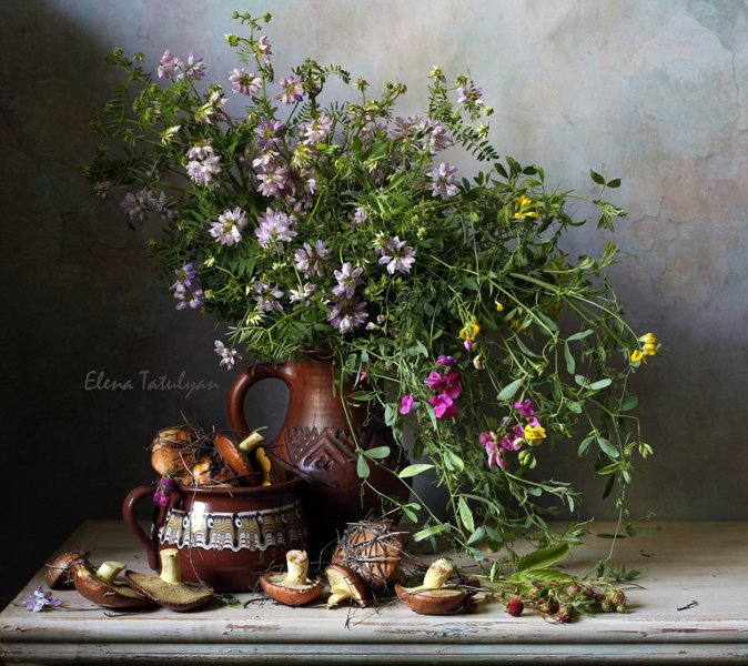 грибы, маслята, полевые цветы, букет, Елена Татульян