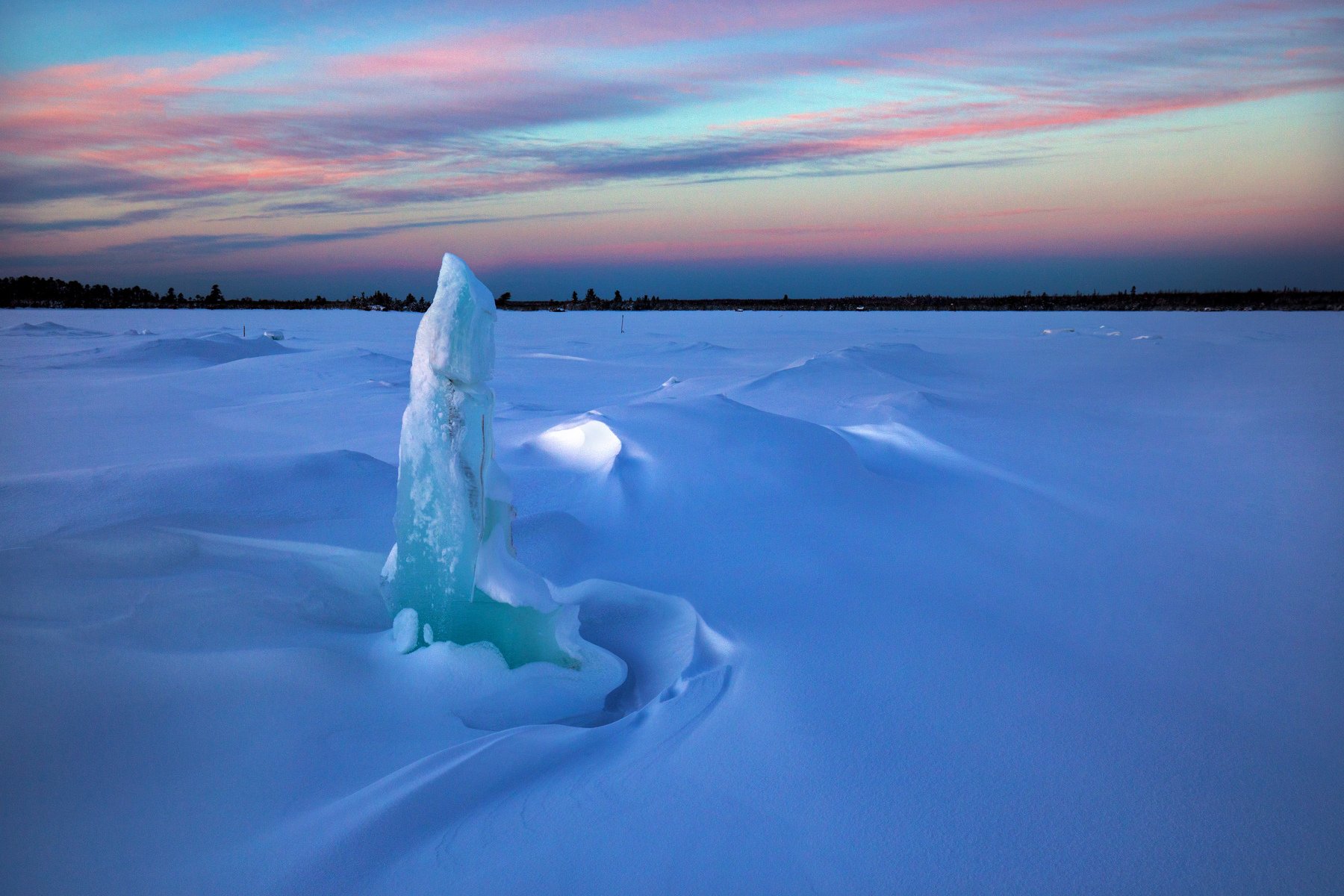 Эти ледяные кубики, оставленные на озере после заготовки льда для праздничных уличных скульптур, чем-то напомнили палец чудища морского из сказки Роу :))