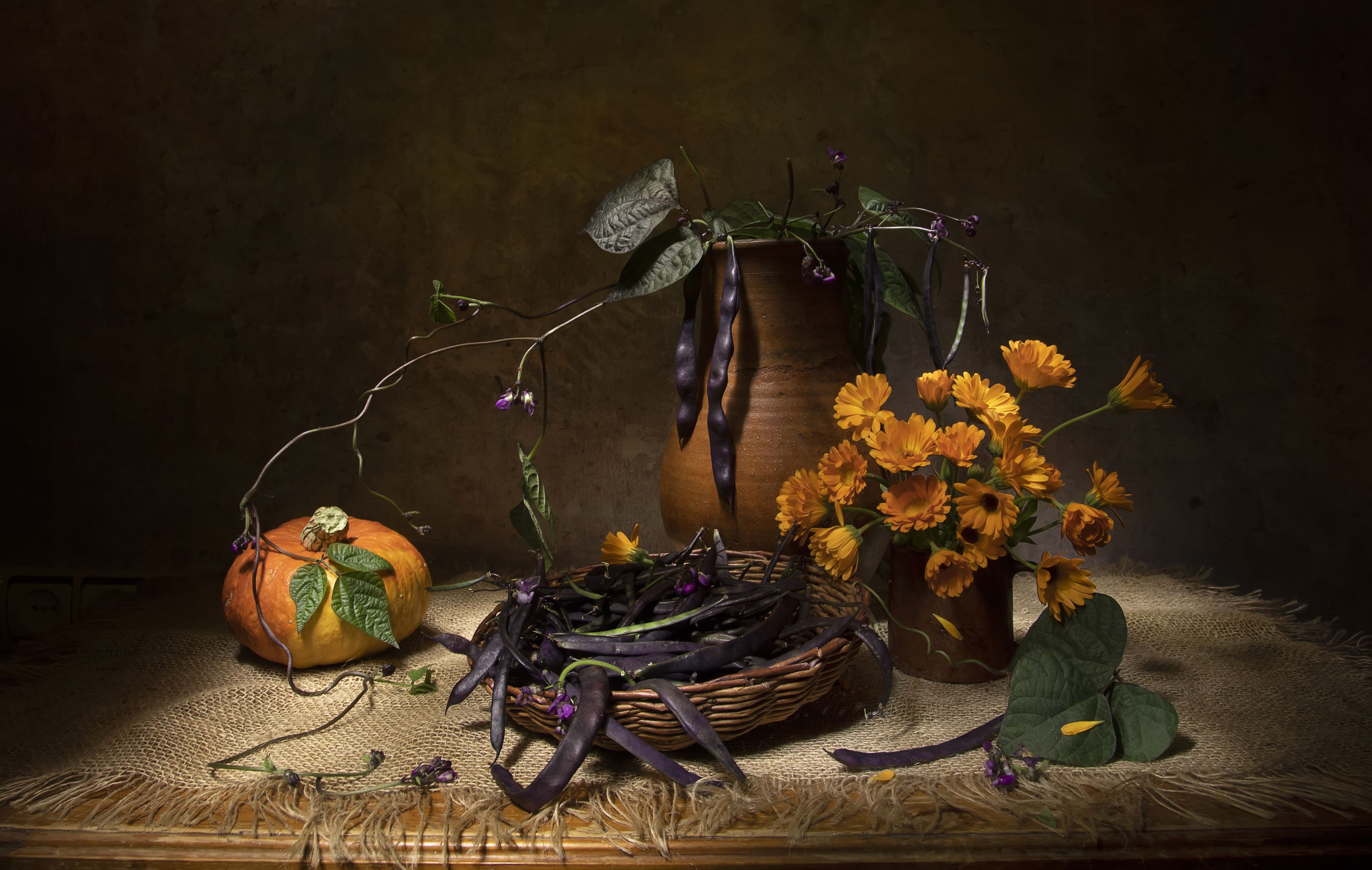 натюрморт, тыква, фасоль, ноготки, календула, Tatyana Fedenkova