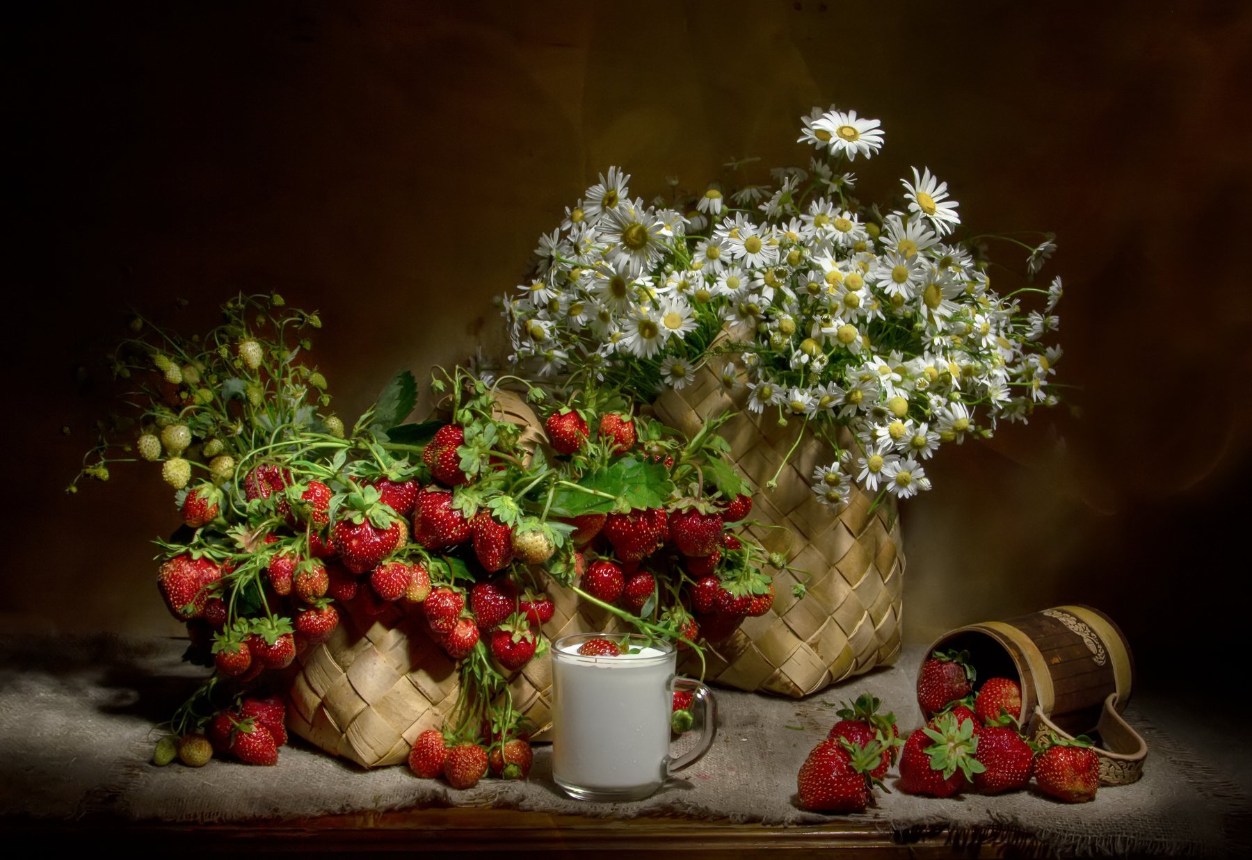 Да, когда я сняла, то поняла, что всего "многовато". Но клубника была настолько спелая, что не позволила что-то переделать, а вот просто разделить на три натюрморта не догадалась...
