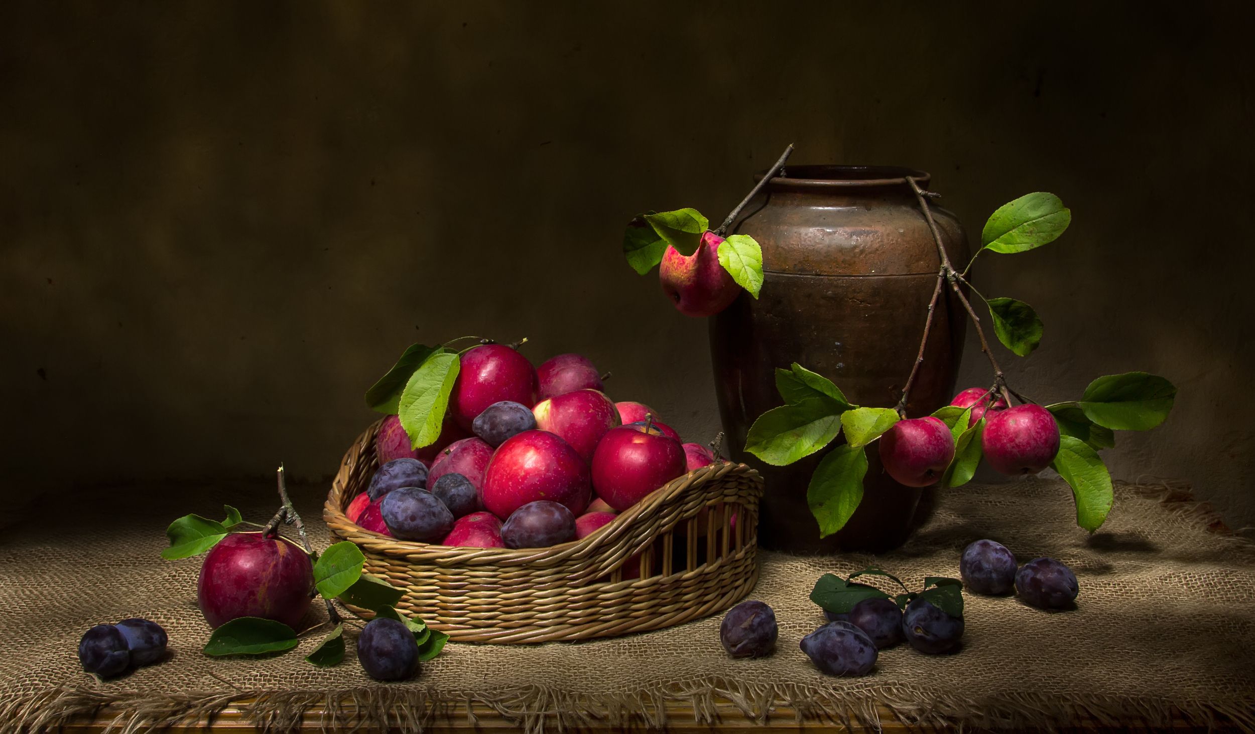 натюрморт, яблоки, сливы, Татьяна Феденкова