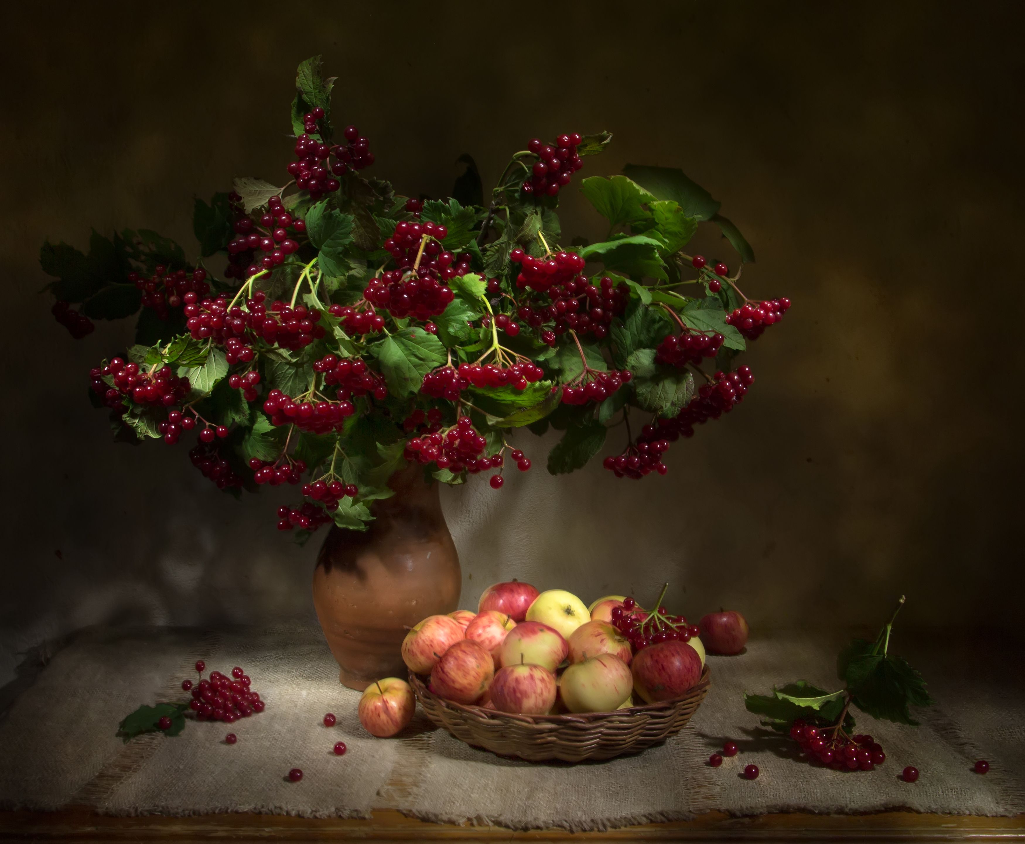 натюрморт, калина, яблоки, Татьяна Феденкова