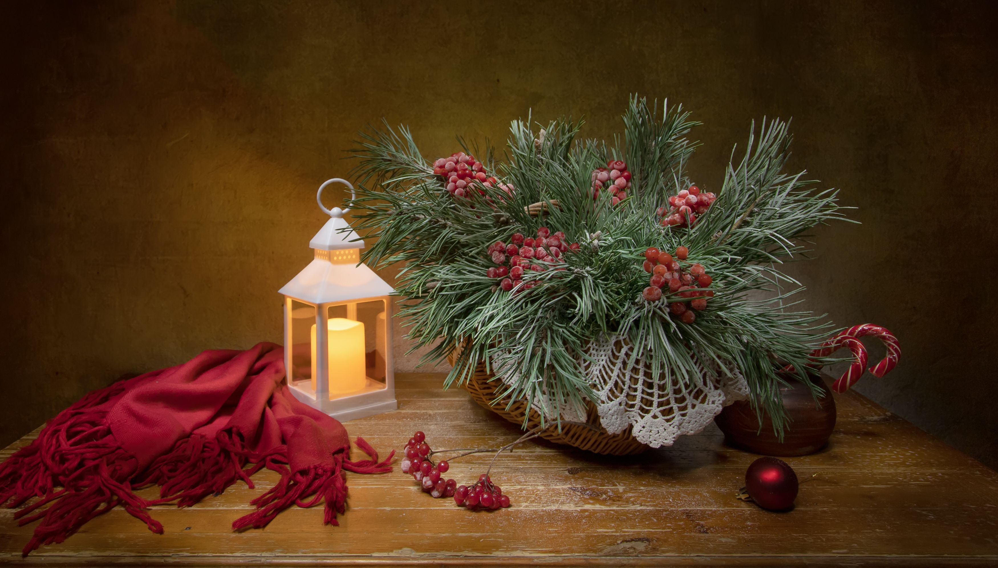 натюрморт, сосна, рябина, фонарик, Феденкова Татьяна