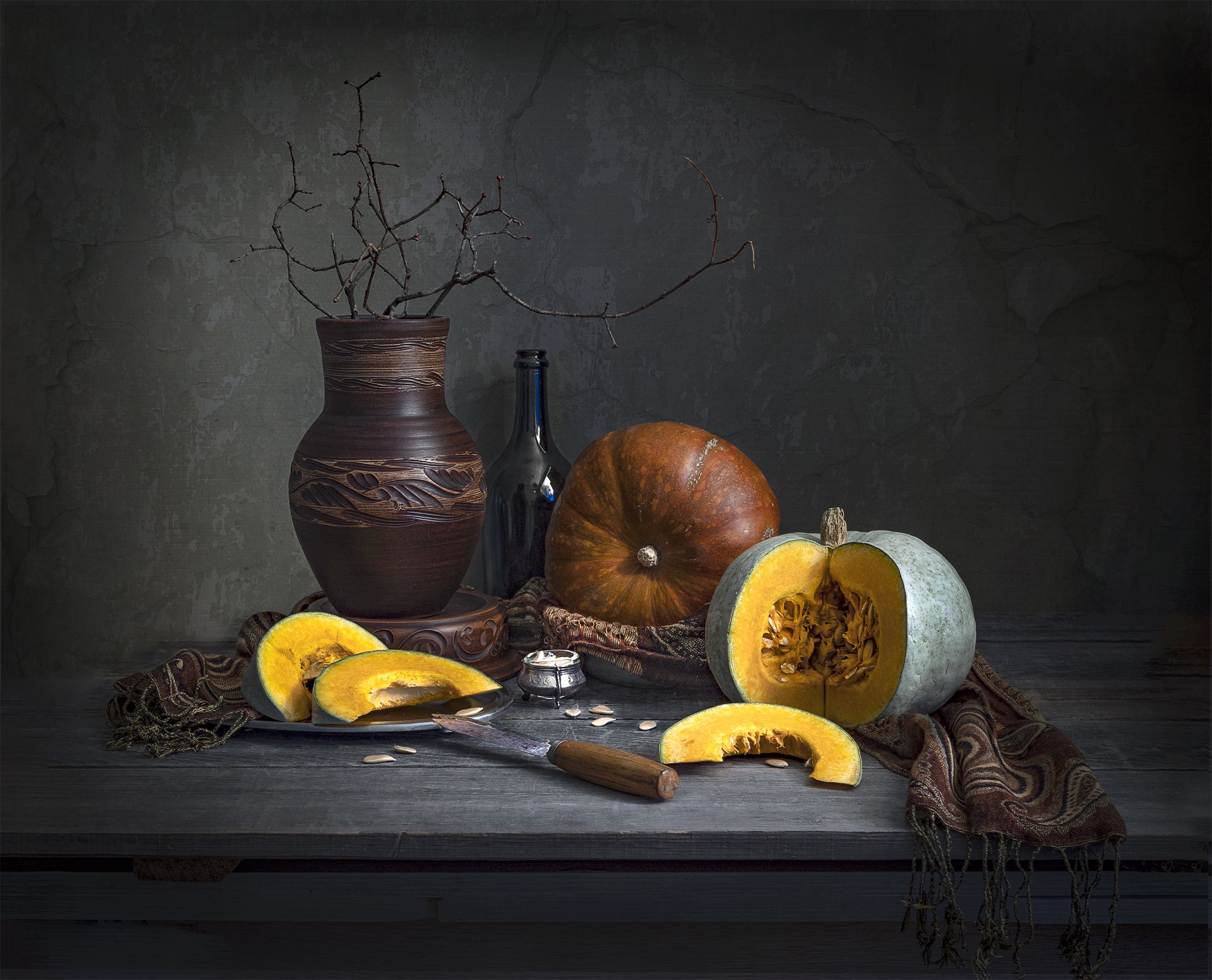 осень,тыква,крынка,драпировка,нож., Татьяна Попова