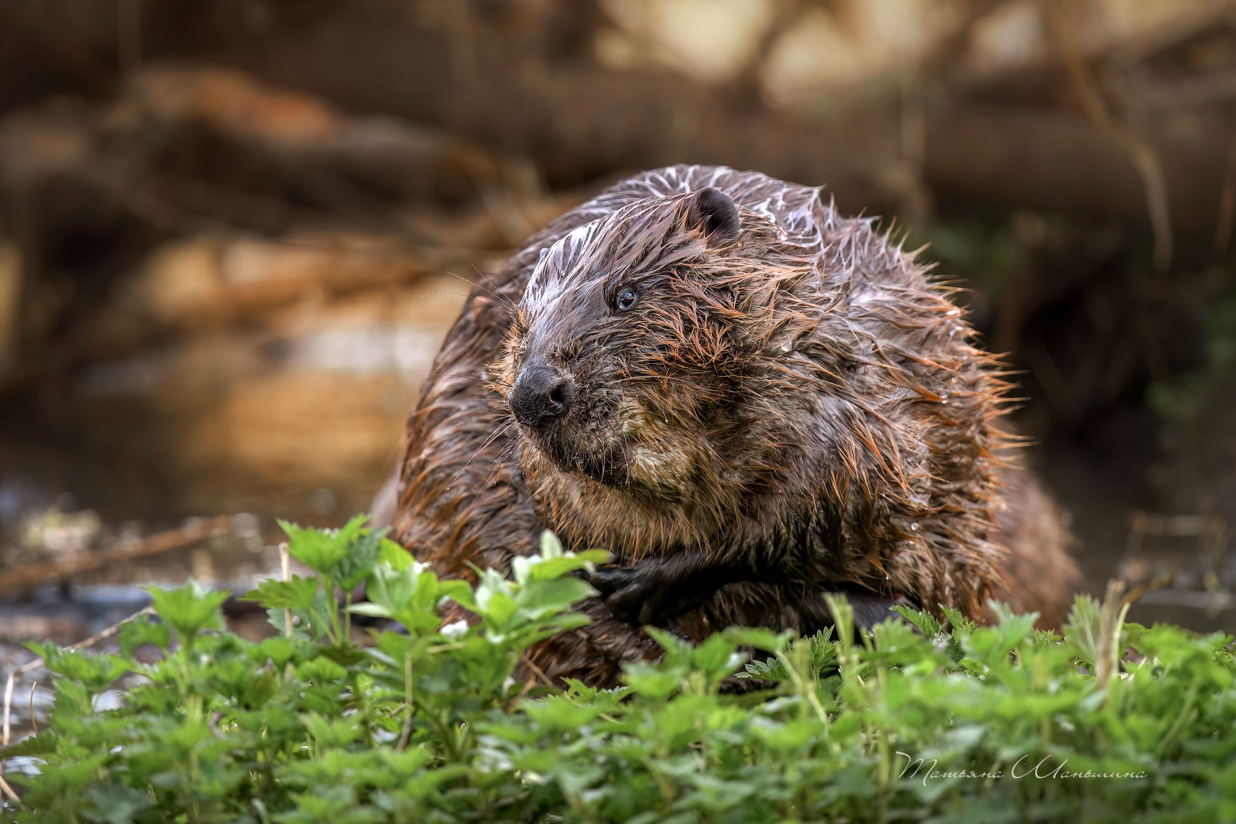Апрель. Бобры с удовольствием вылезают полакомиться свежей растительностью. Хоть этот верь и ведет ночной образ жизни, увидеть его можно весной за пару часов до заката.