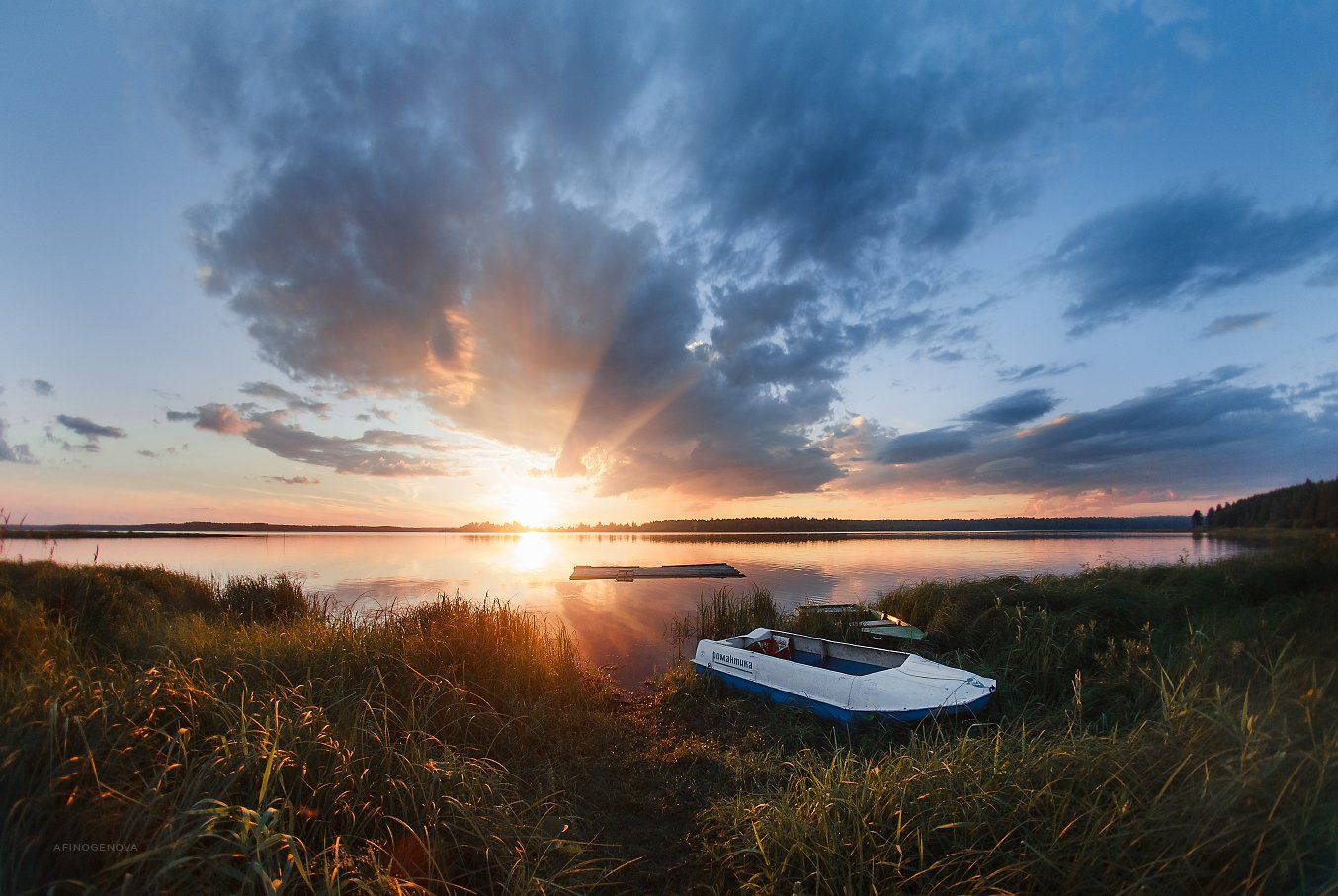 закат созакат солнце облака свет небо берег лодка вода пеленг, Татьяна Афиногенова