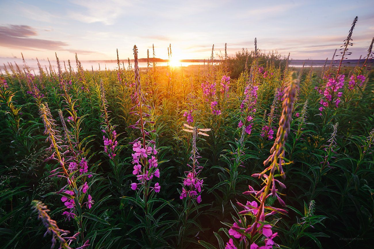 рассвет, солнце, цветы, лето, Татьяна Афиногенова