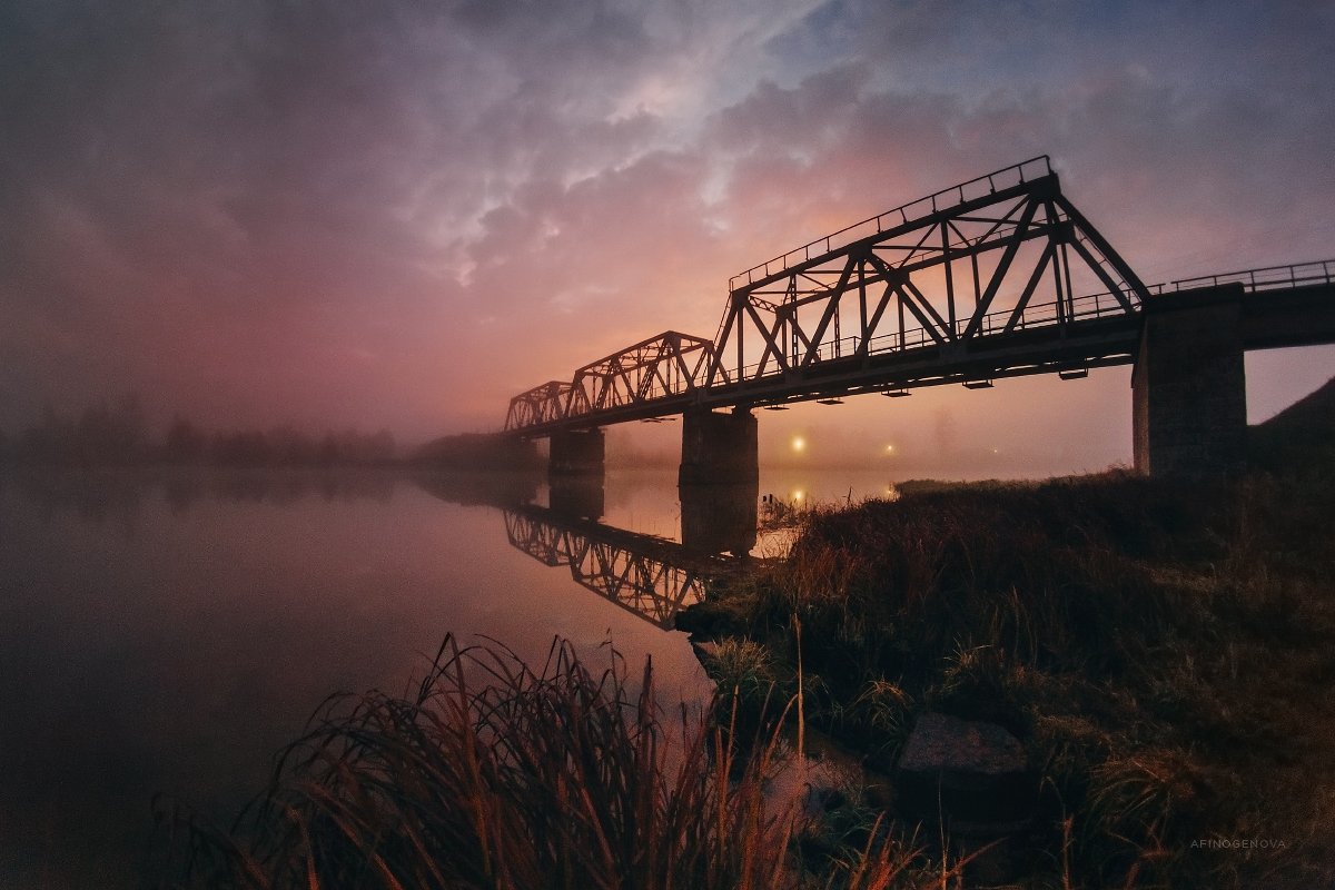 мост утро рассвет берег облака, Татьяна Афиногенова
