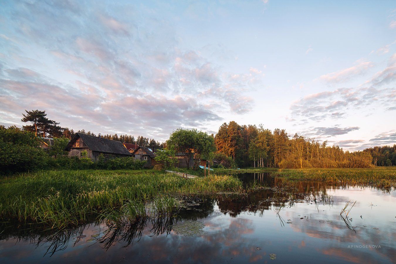 лето утро деревня лес вода отражение, Татьяна Афиногенова