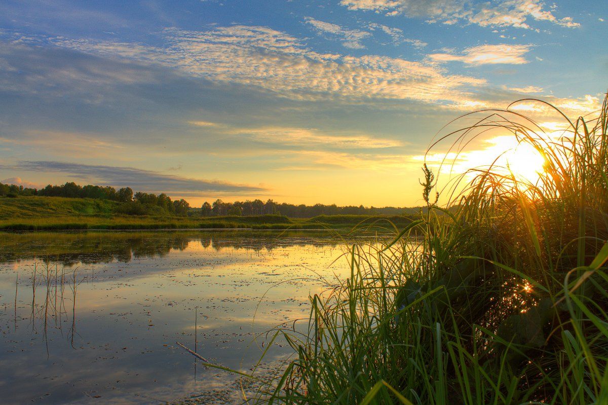 вечер, закат, лето, небо, облака, пейзаж, природа, река, солнце, трава, Артём Колупахин