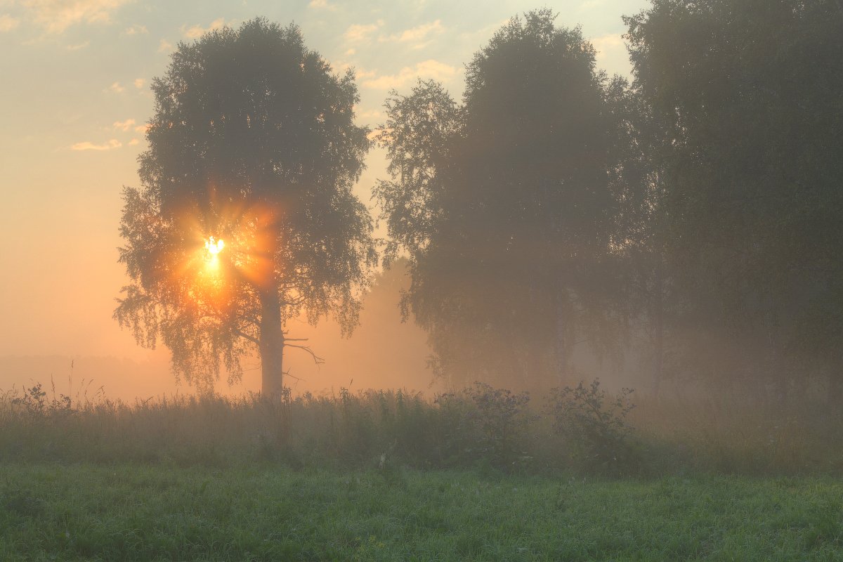 Деревья, Красота, Лето, Лучи, Небо, Пейзаж, Природа, Рассвет, Свежесть, Солнце, Туман, Утро, Артём Колупахин