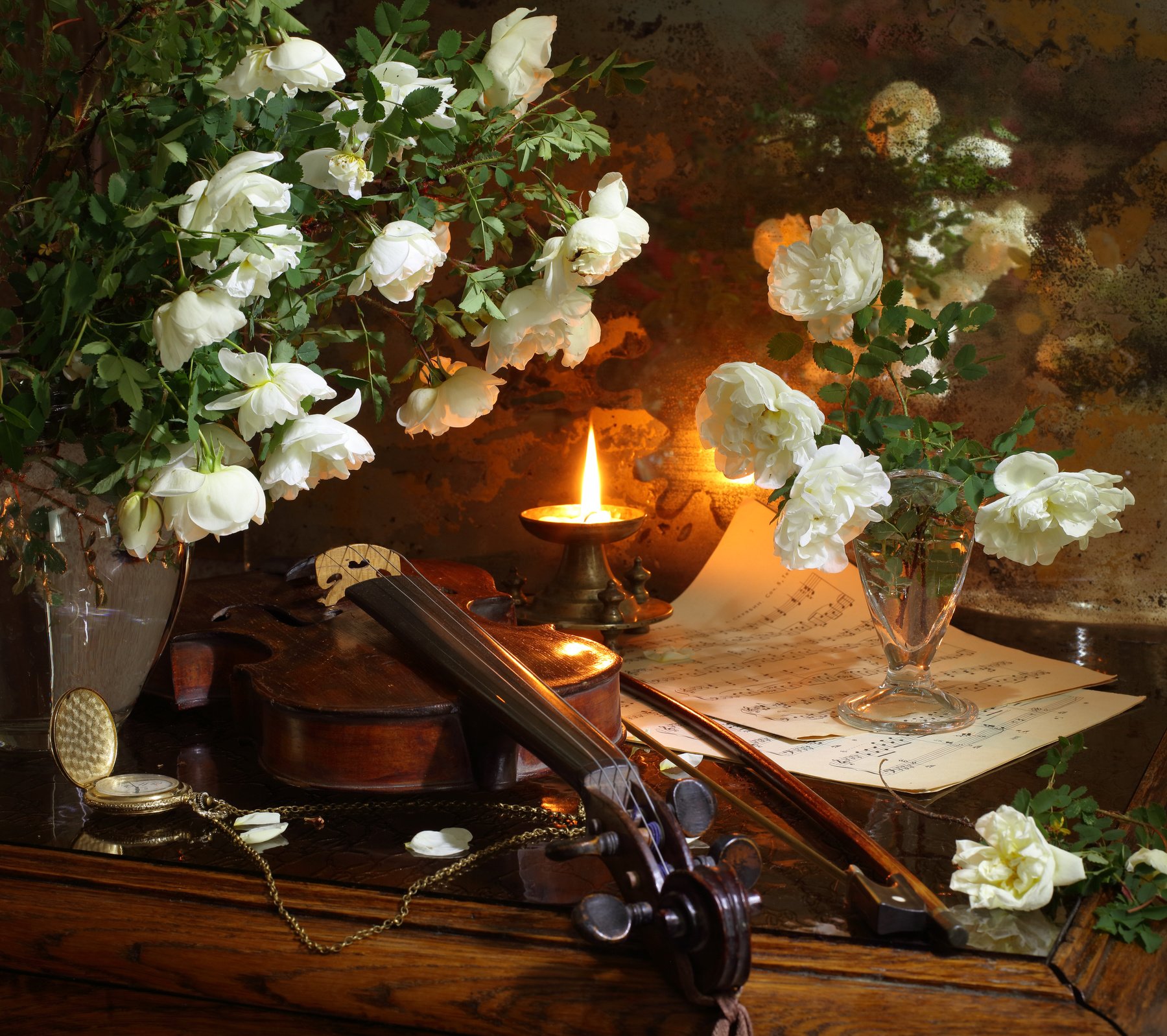 розы, скрипка, музыка, свеча, Андрей Морозов