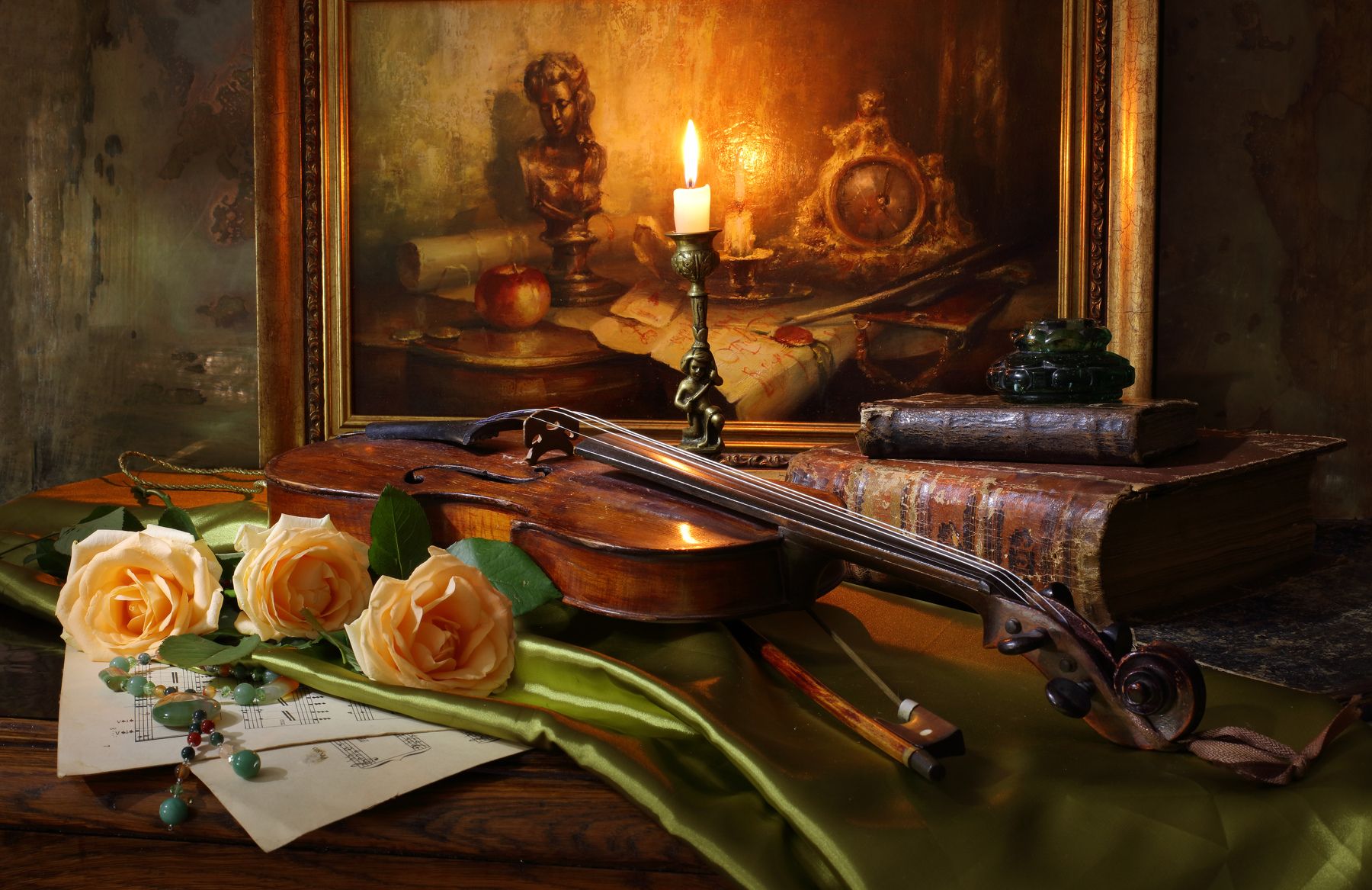 скрипкакартинаживописьсвечакнигимузыка