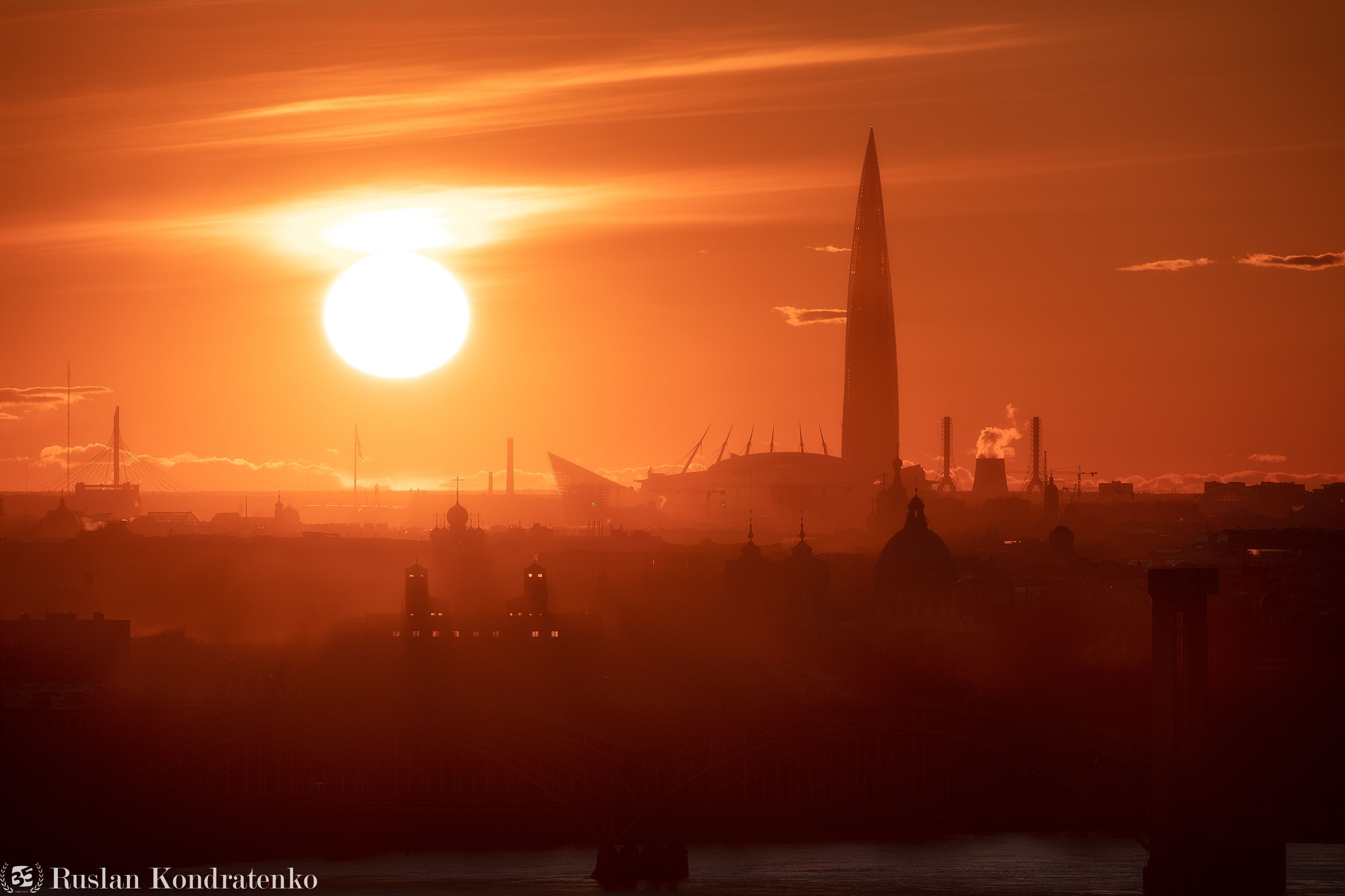 санкт-петербург, закат, лахта-центр, лахта, небоскреб, прострел, мост, финляндский железнодорожный мост, лавра, александро-невская лавра, Кондратенко Руслан