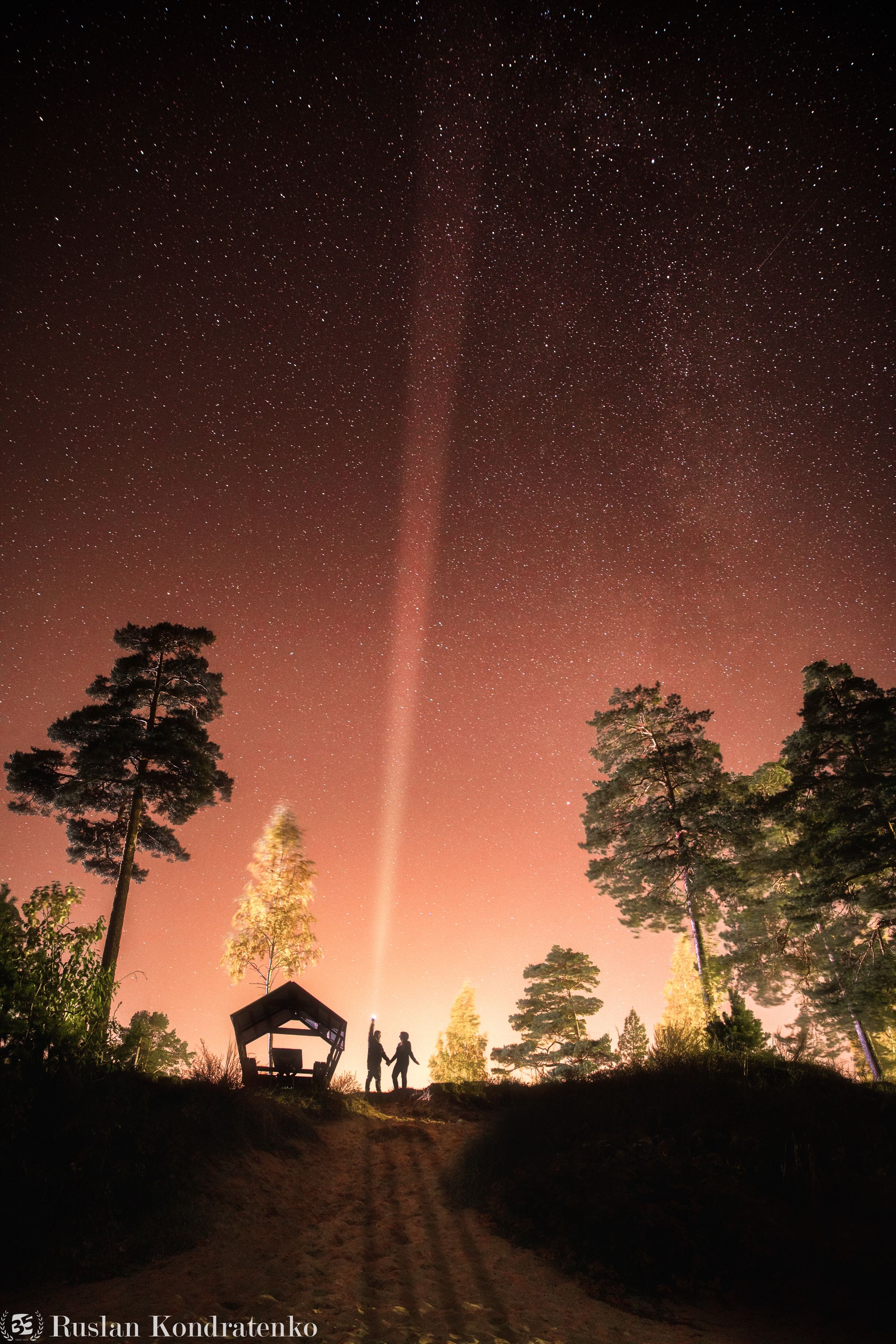 ночь, звезды, фонарь, звездное небо, Руслан Кондратенко