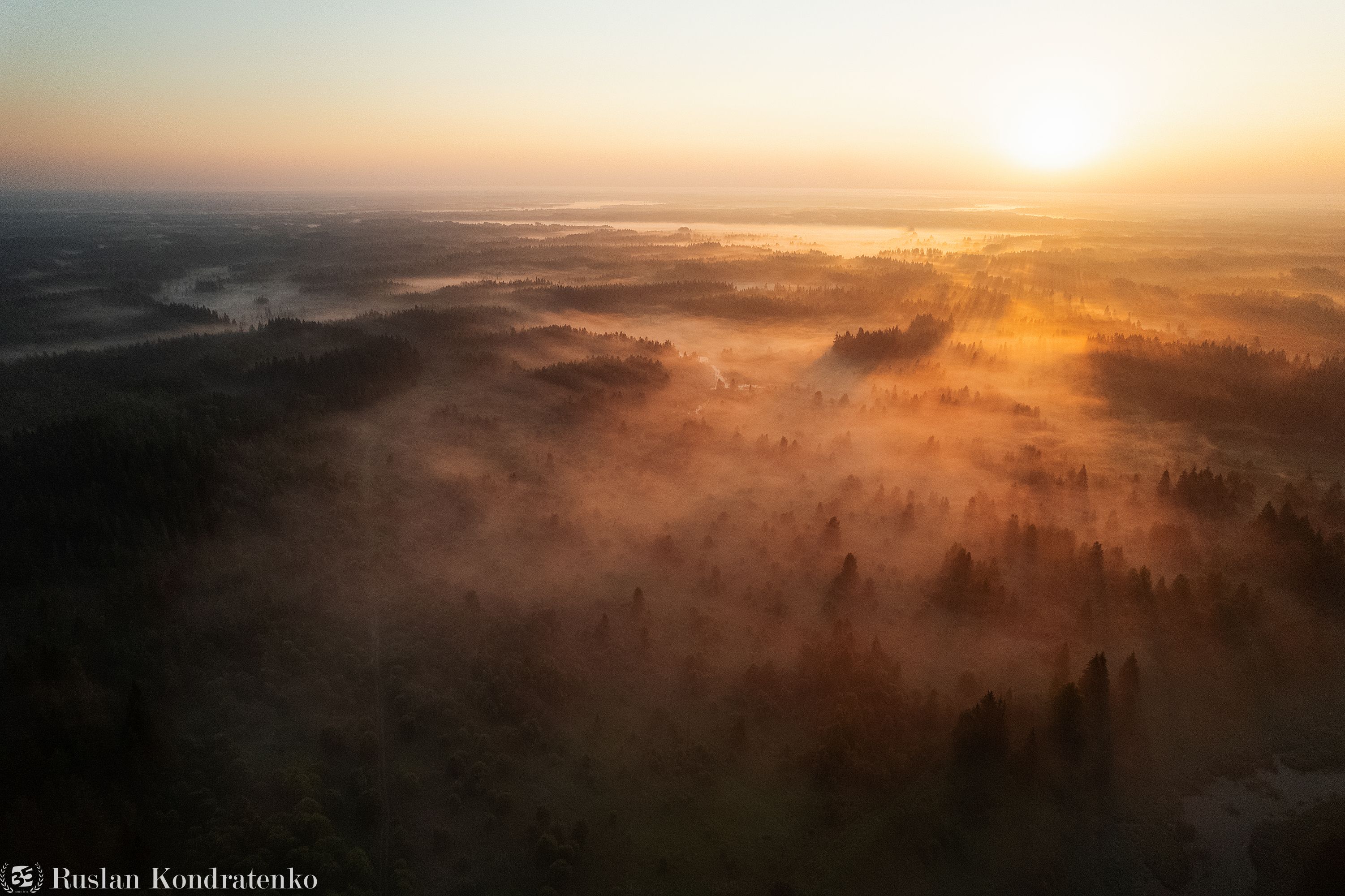 ленинградская область, аэрофото, аэрофотография, туман, дрон, съемка с дрона, лес, рассвет, закат, Руслан Кондратенко