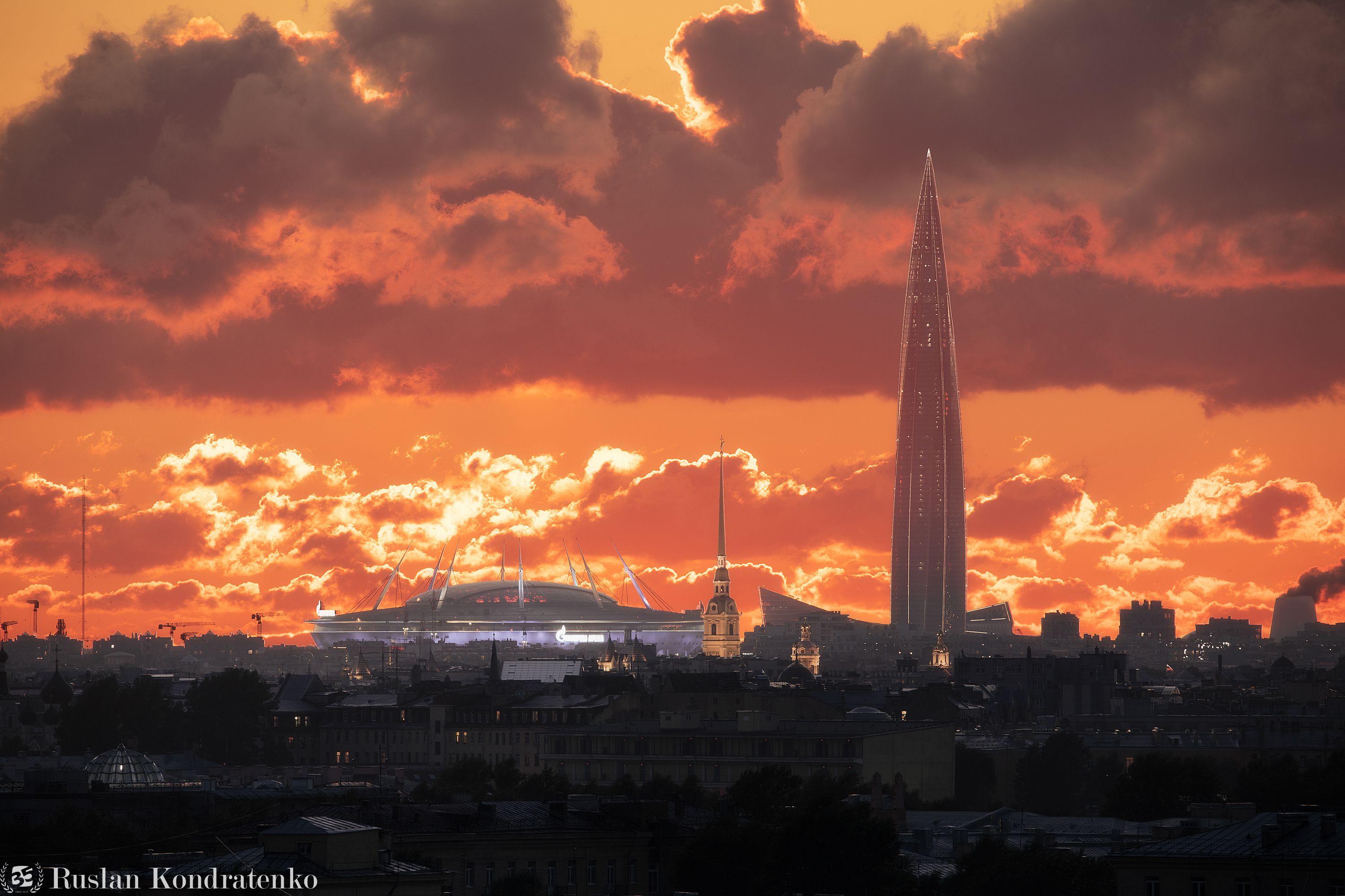 санкт-петербург, закат, лахта-центр, лахта, небоскреб, прострел, time blending, композитная фотография, газпром-арена, петропавловский собор, петропавловская крепость, Кондратенко Руслан