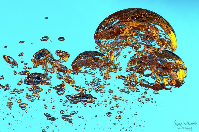 Брызги, Вода, Воздух, Всплеск, Золото, Капли, Макро, Пузыри, Сергей Толмачев