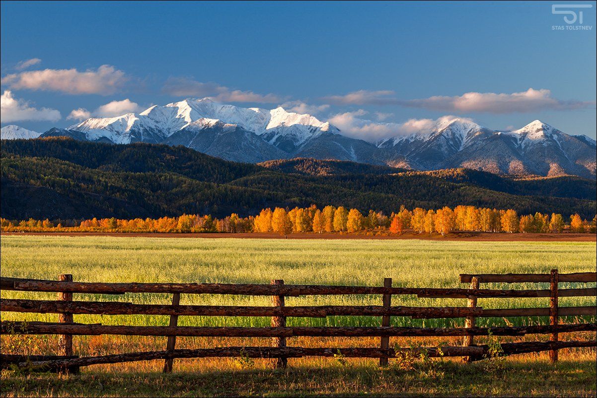 Оказаться в нужное время в нужном месте - вот настоящая удача пейзажного фотографа. К этому моменту три дня ездил по Тункинской долине (Бурятия) в поисках красивых кадров. Но самый красивый кадр снял уже по дороге домой. Просто ехал и увидел ЭТО. Просто остановился и снял. Такое состояние длилось всего минут пять, когда солнце выглянуло из-за туч, сотворило вот такое чудо, и затем скрылось за горизонтом. Штатив, 1/6 сек; f/13; ISO 100; поляризационный фильтр.